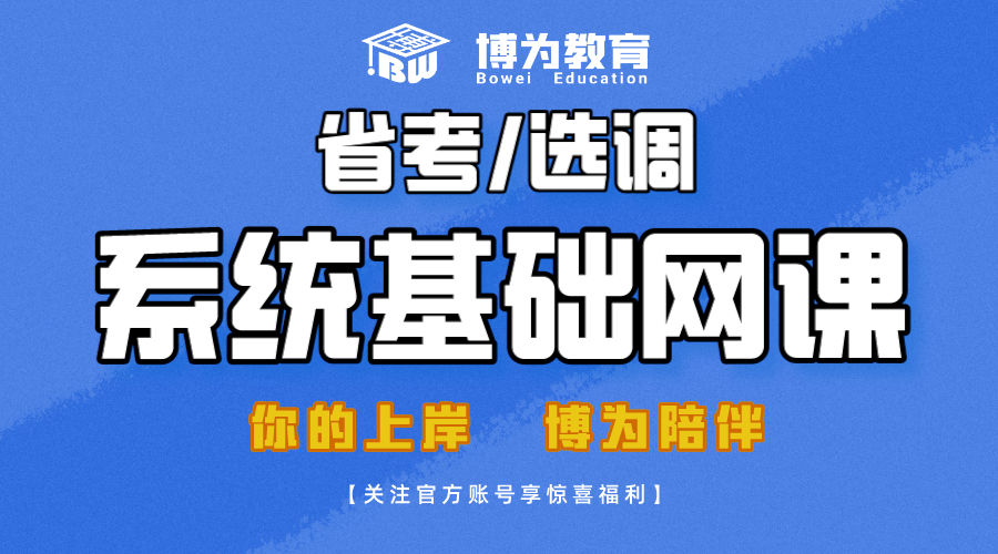 免费开通!省考/选调生系统基础网课!名师大咖带你轻松学习言语、判断、数资、申论各科基础,快速学会并夯实基础!博为大咖助你自学也能成功上岸!