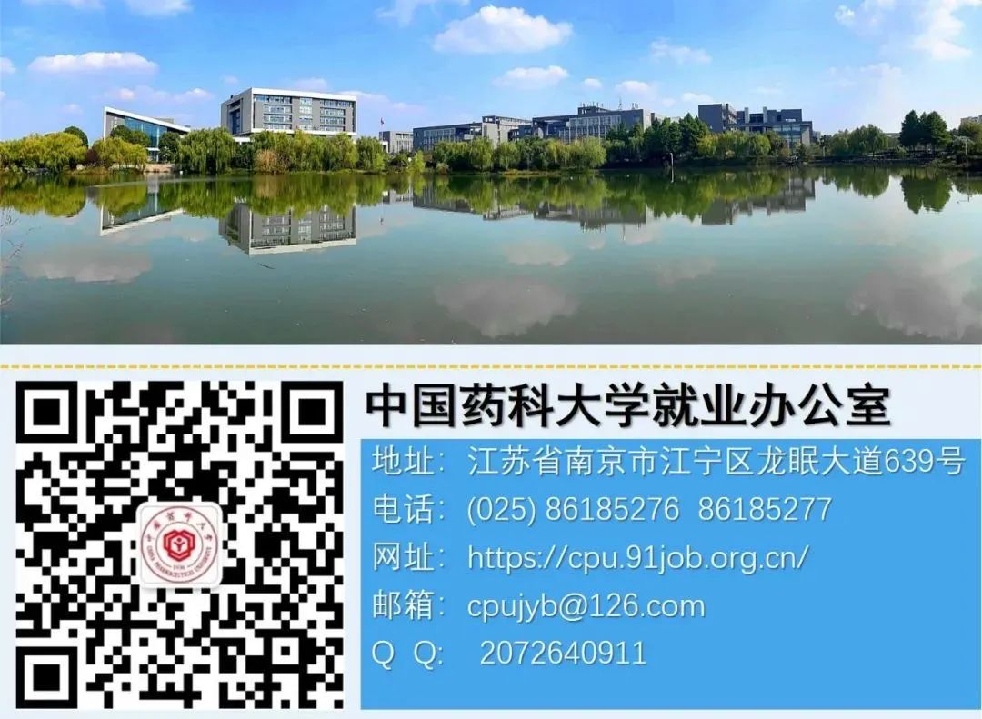 “汇聚南药”公众号所转载文章来源于其他公众号平台,主要目的在于分享行业相关知识,传递当前最新资讯。图片、文章版权均属于原作者所有,如有侵权,请在留言栏及时告知,我们会在24小时内删除相关信息。信息来源:cpujyb 中国药科大学就业办