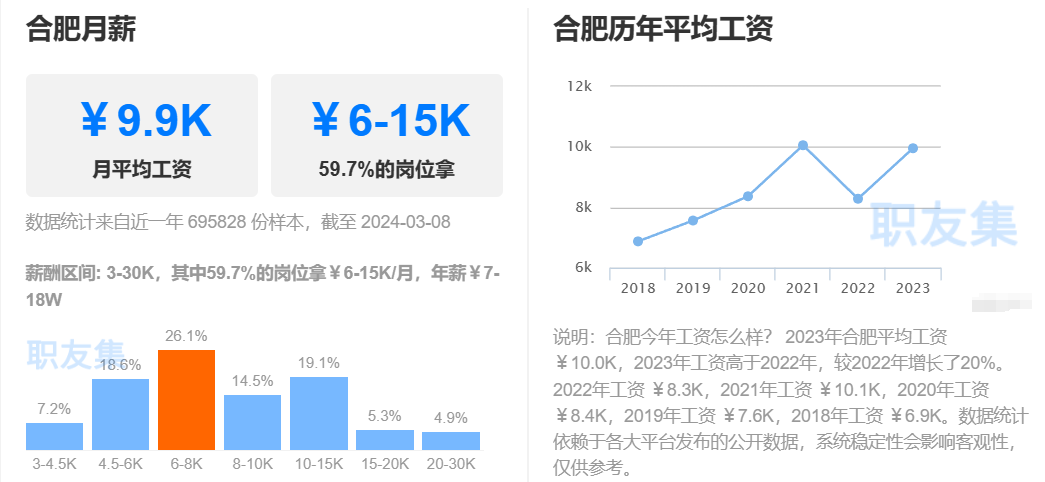 这样的年薪在安徽非常不错,可以保证在合肥拥有较高的生活质量。
