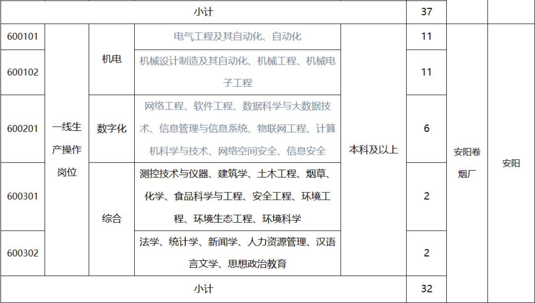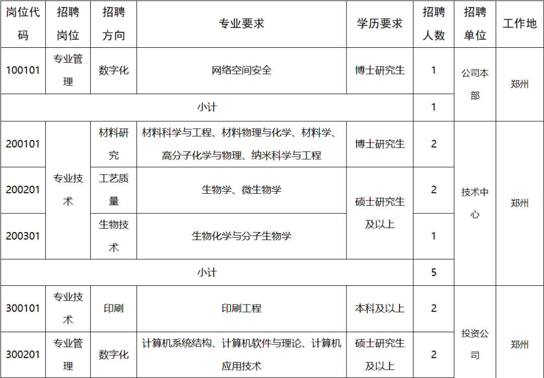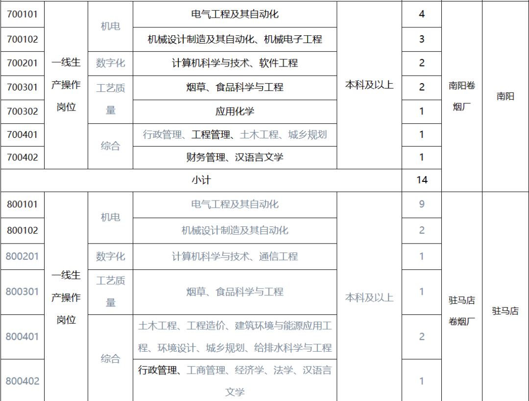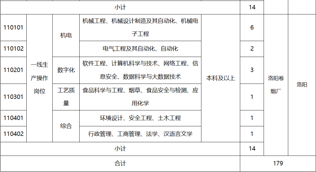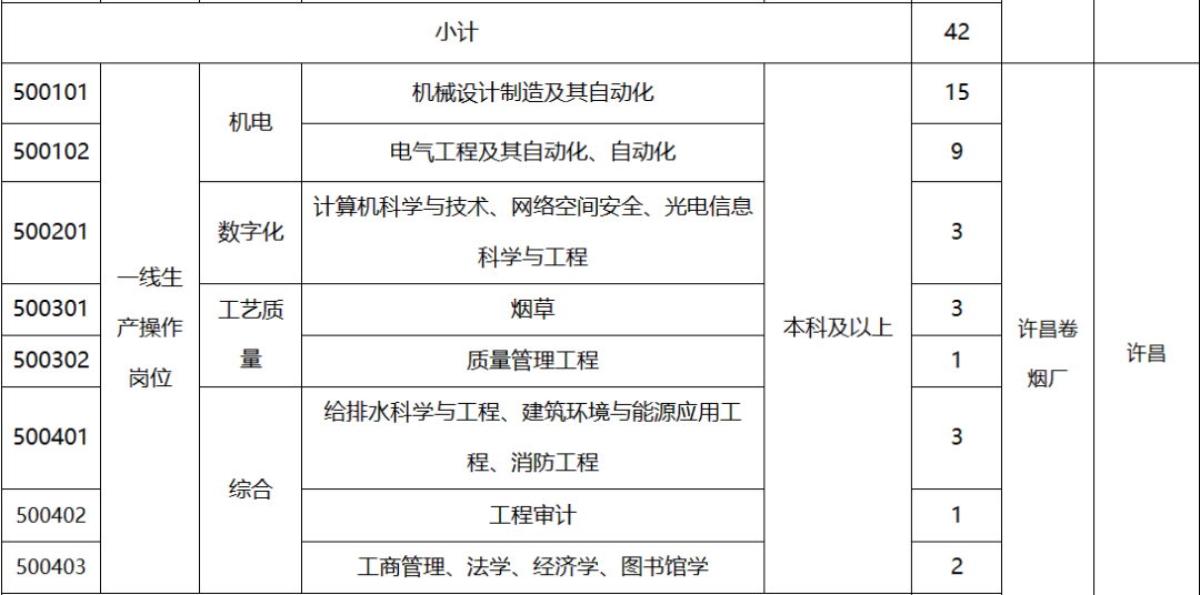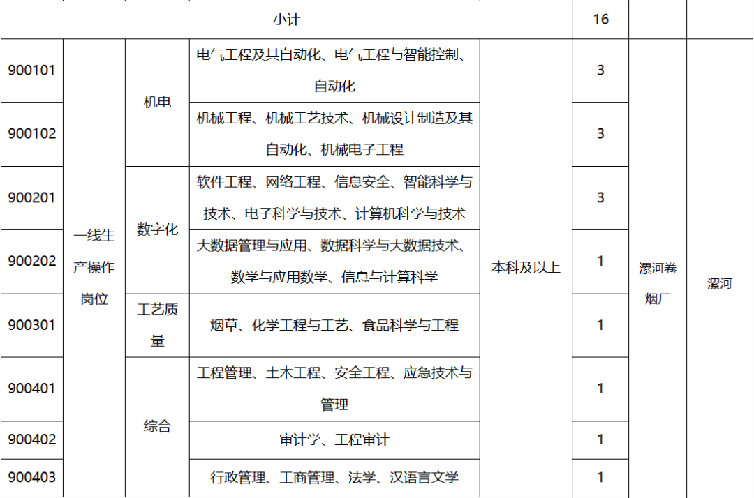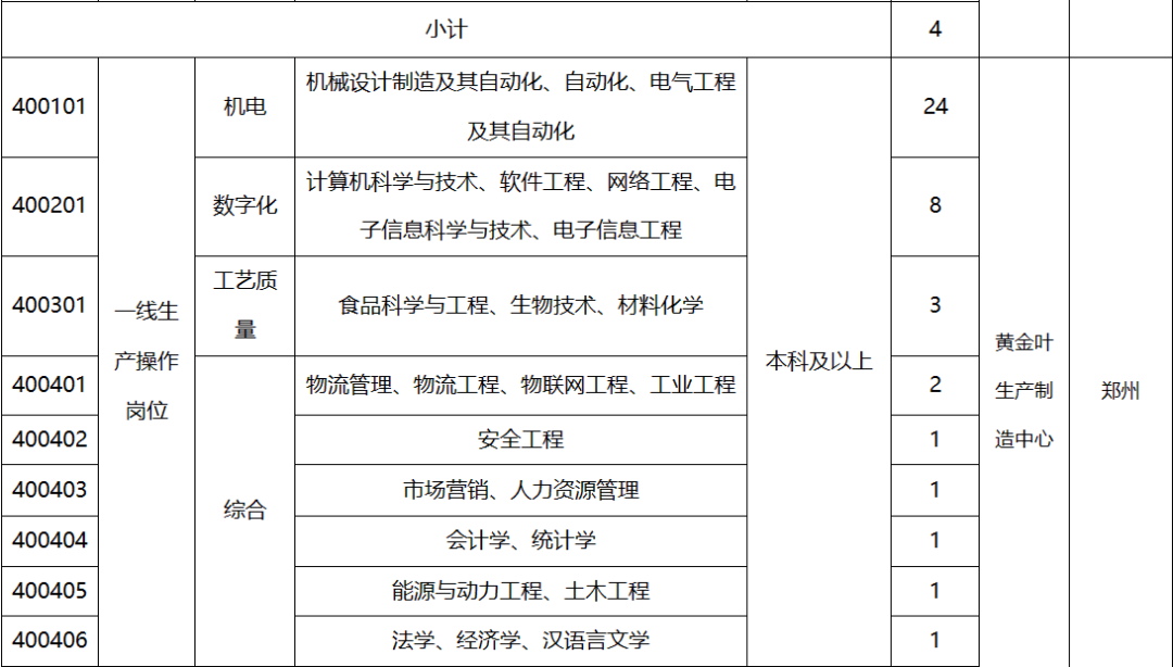 招聘单位、岗位、人数、专业及学历要求如上表《河南中烟2024年大学生招聘计划表》所示。