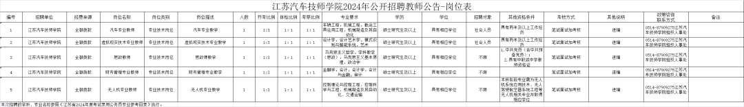 江苏汽车技师学院2024年公开招聘教师公告岗位信息表
