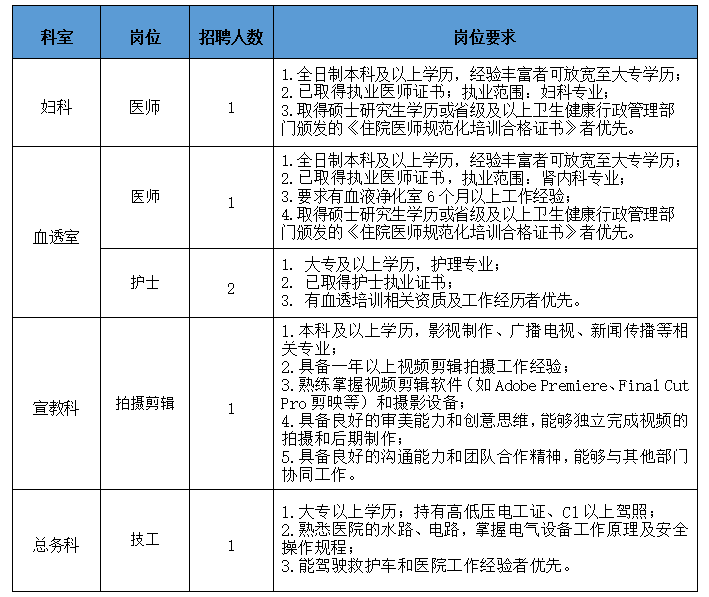 为加强我院专业技术人才队伍建设,现面向社会招聘以下人员: