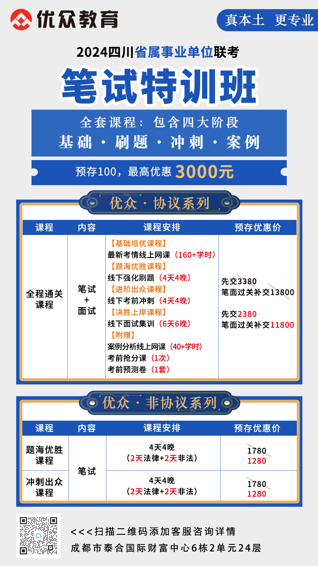 1.笔试内容:编码2024121001——2024121022岗位的笔试科目是《综合知识》和《职业能力倾向测验》。《综合知识》包括:时事、法律、管理、政治理论、公文写作、职业道德、人文与科技、事业单位知识等。