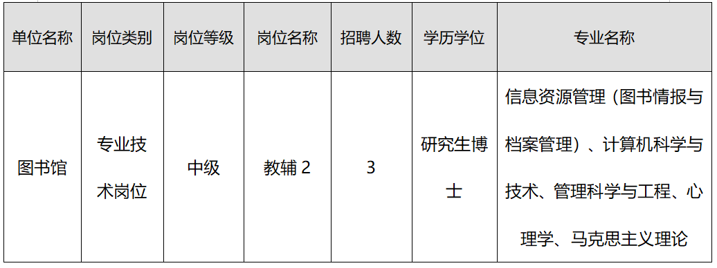 根据图书馆教学、科研和管理服务等工作需求,拟面向社会公开招聘博士研究生3人,具体如下: