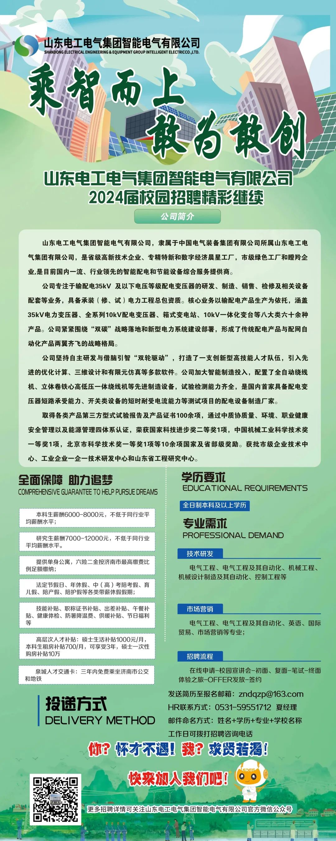 >【就业招聘】乘智而上 敢为敢创-山东电工电气集团智能电气有限公司2024届校园招聘精彩继续
