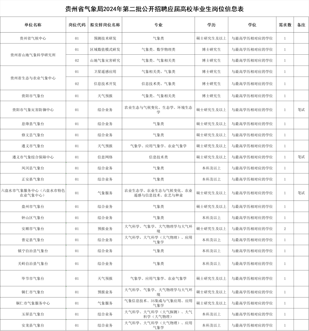 △以上为广告信息根据《贵州省气象部门2024年公开招聘应届高校毕业生公告》(第1号)要求,经贵州省气象局研究,决定开展2024年第二批公开招聘应届高校毕业生工作,现将有关事项公告如下: