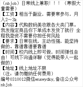 nbjob希望各位同学朋友,能在我们平台找到合适的工作,不仅赚到钱,还能历练自己,为提早进入社会做准备。