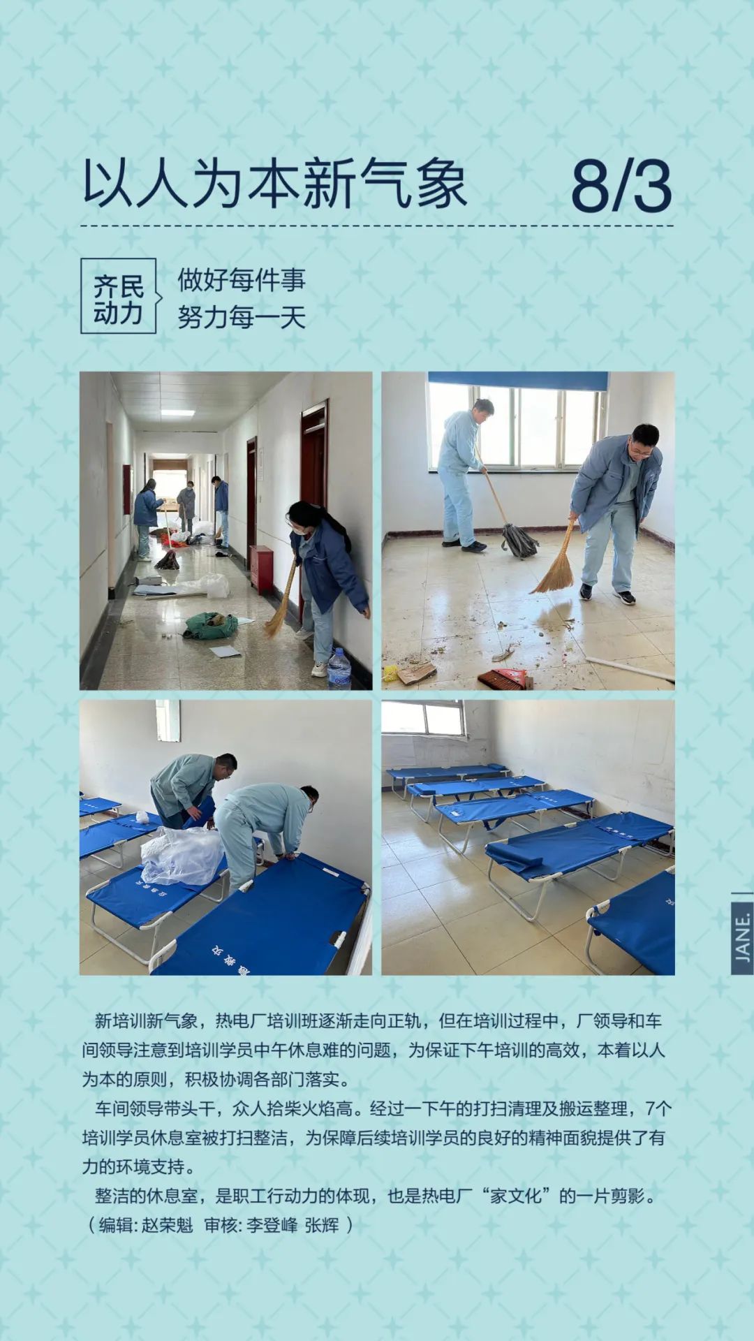 ✔ 培训人员做好日常学习、宣传工作,有工作冲锋在前,展现青年担当。