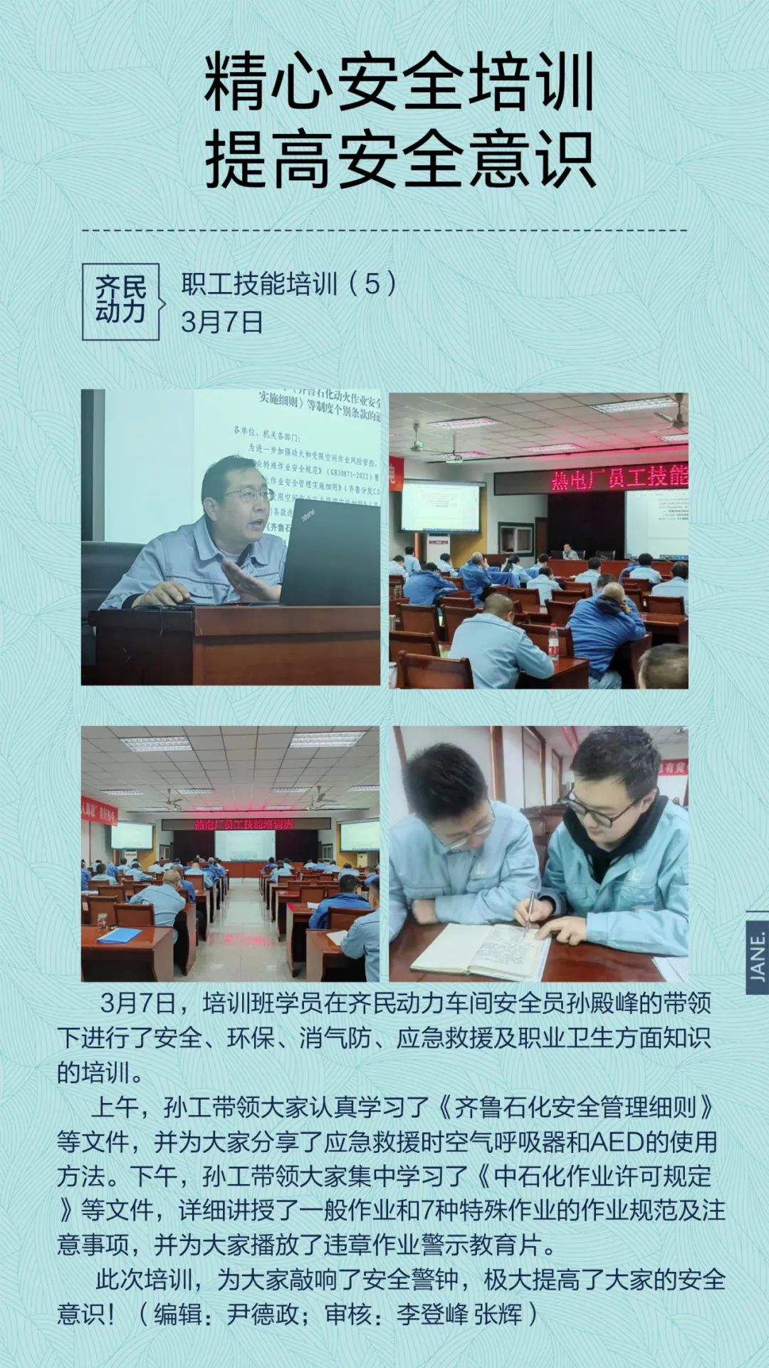 当冬日的寒意渐渐褪去,草长莺飞不仅昭示着万物复苏,也预示着热电全员培训热潮的帷幕即将拉开。根据厂部工作要求,齐民动力车间以“进一步提高未来新机组运行职工队伍的专业知识和业务水平”为基本宗旨,向内全面规划,向外多方协调,以打造“边工边学、边精边兼、边记边考”的“六边形学生”为目标,全力推进职工培训工作落实落地,为新机组顺利建成投产、长周期、高效稳定运行提供人才保障。