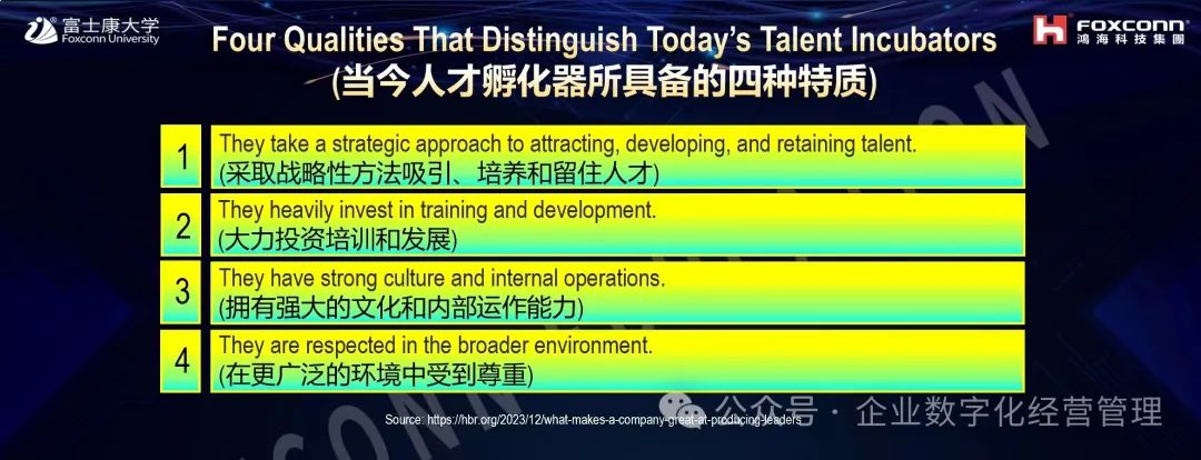 出品 | 企业数字化经营管理(ID:GD13928750605)2024年2月20日,陈振国校长分享“哪些公司是顶级人才的孵化器?四个当今人才孵化器的关键特质”。