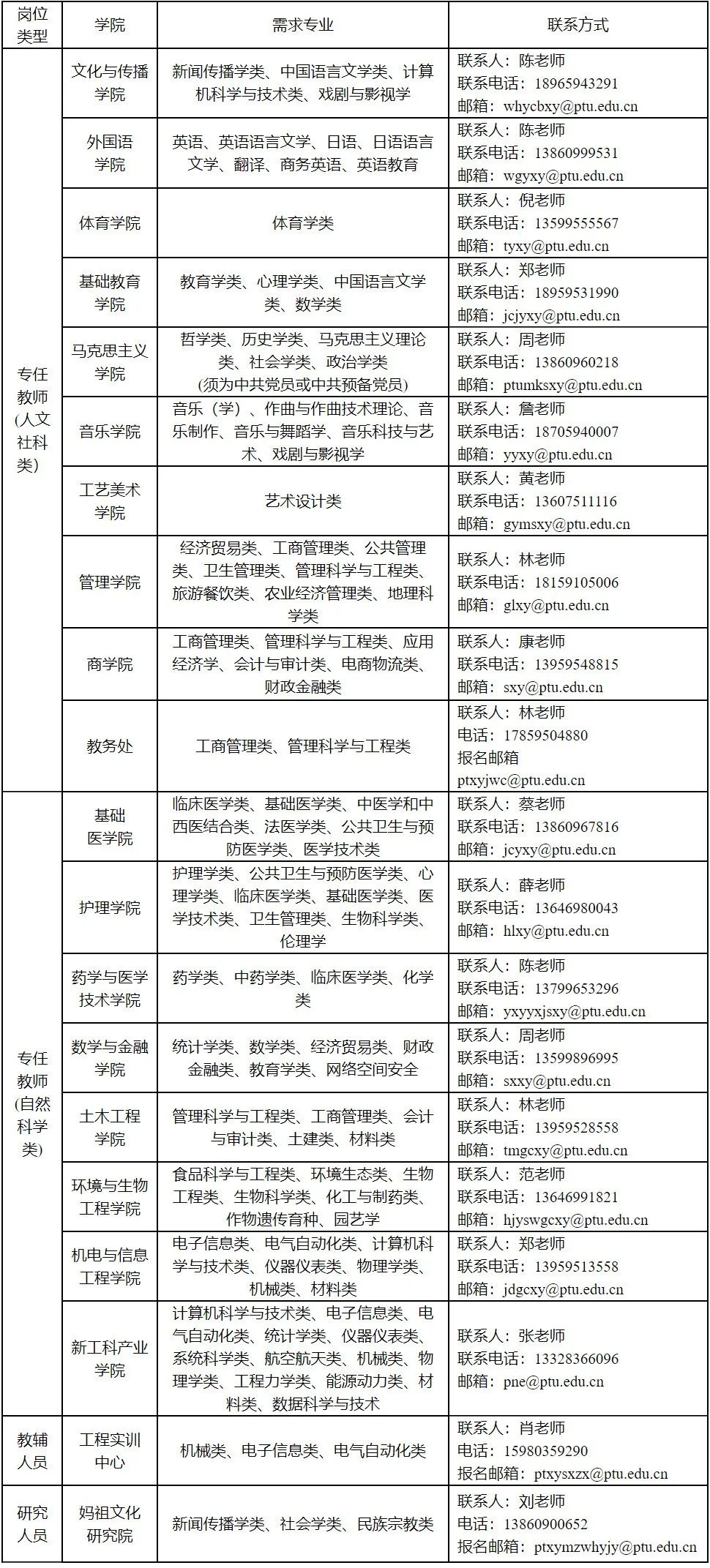 地址:福建省莆田市荔城区莆田学院紫霄校区人事处。