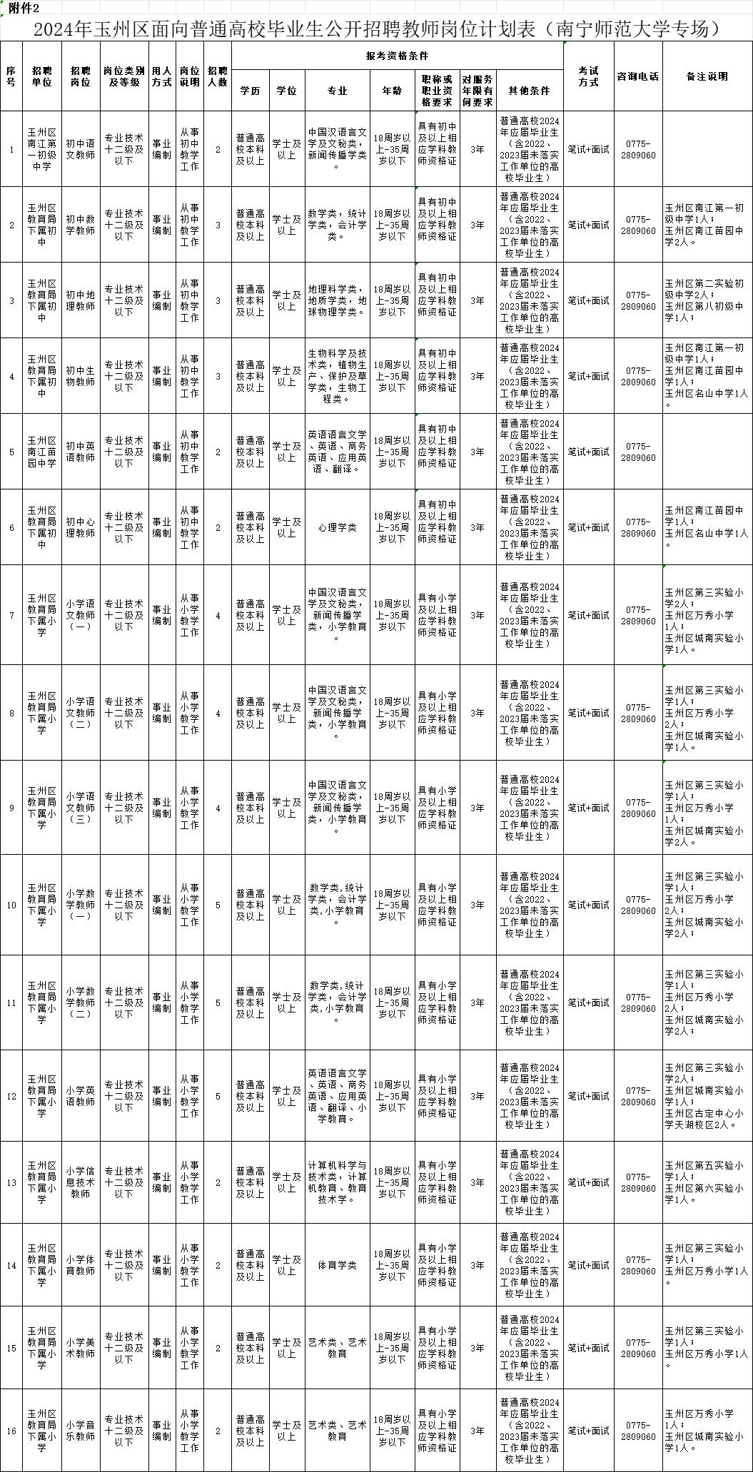 2. 2024年玉州区面向普通高校毕业生公开招聘教师岗位计划表(南宁师范大学专场).xlsx