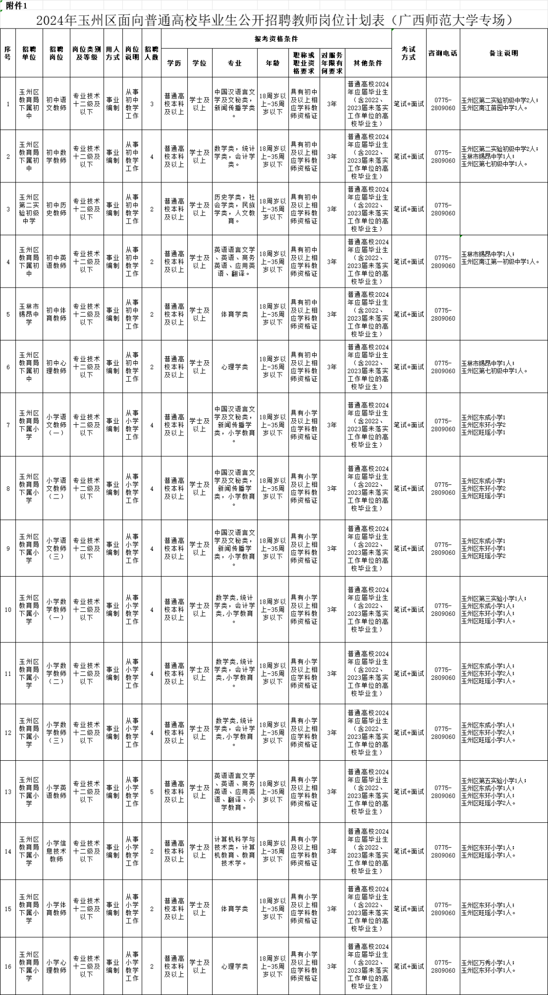 1. 2024年玉州区面向普通高校毕业生公开招聘教师岗位计划表(广西师范大学专场).xlsx