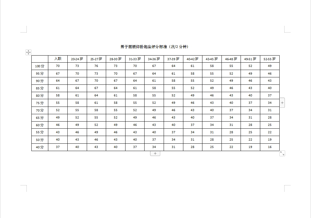 2.体能测试标准