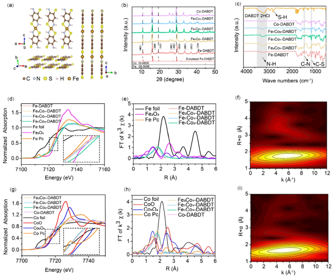 Fe/Co-DABDT的XRD、FT-IR、XANES、EXAFS表征