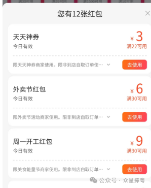 送给大家外卖优惠券福利啦,不管是美团还是饿了么,点餐之前扫下方二维码,都可以先领取优惠券再下单啦,给自己加个鸡腿,元气满满