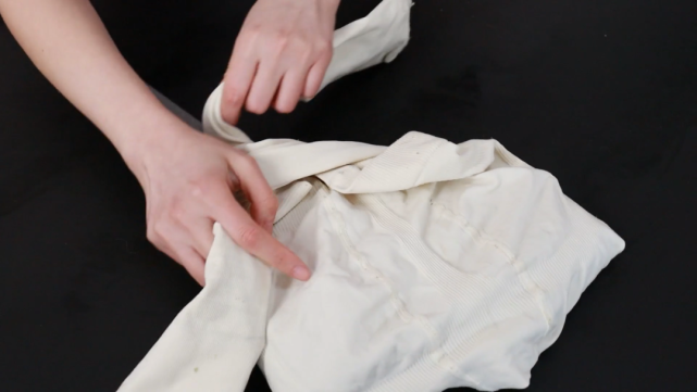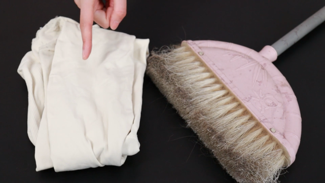 清洁液调好,我们来看看这个擦玻璃神器该如何组装,咱们将扫把靠在这个打底裤里面,两条裤腿分别打过来,咱们这样交叉放置缠绕扫把一圈。缠绕过来以后咱们再将两个裤腿分别固定在咱们的扫把柄上。