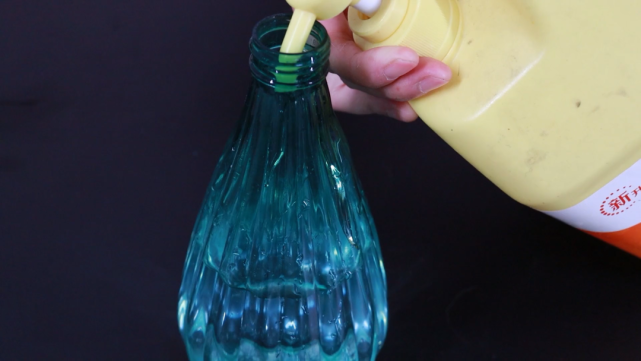 接下来咱们来调制清洁液,在喷雾中倒入大半瓶的清水,再挤入约两磅的洗洁精。洗洁精能够去除污渍污垢字,再倒入约两瓶盖白醋,