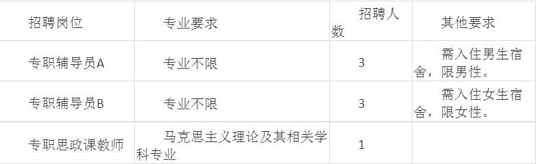提供科研启动费1万元;服务期内,在学校房源许可的情况下,提供套房供租住,原则上每套住2人及以上。专职辅导员、专职思政课教师津贴按上级及学校相关规定执行。