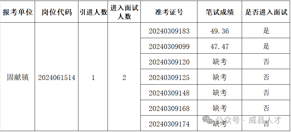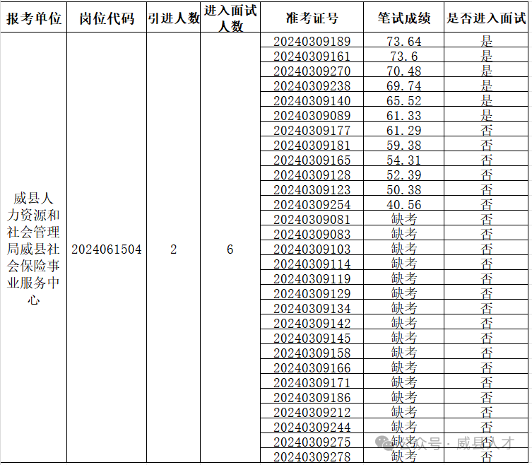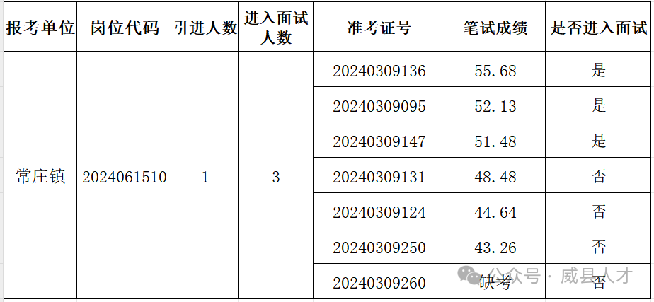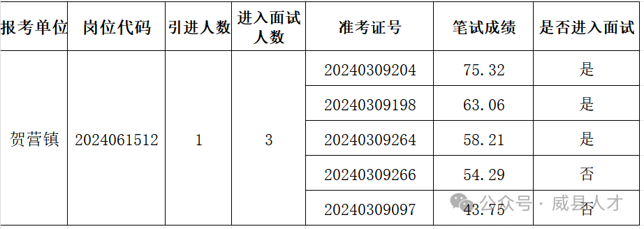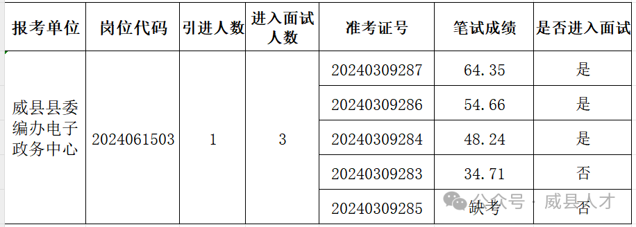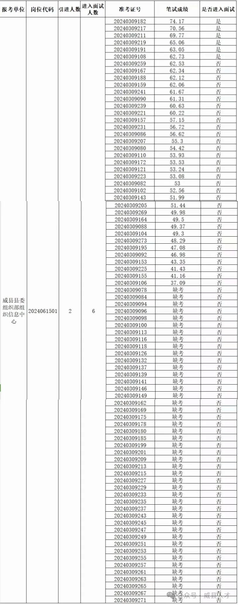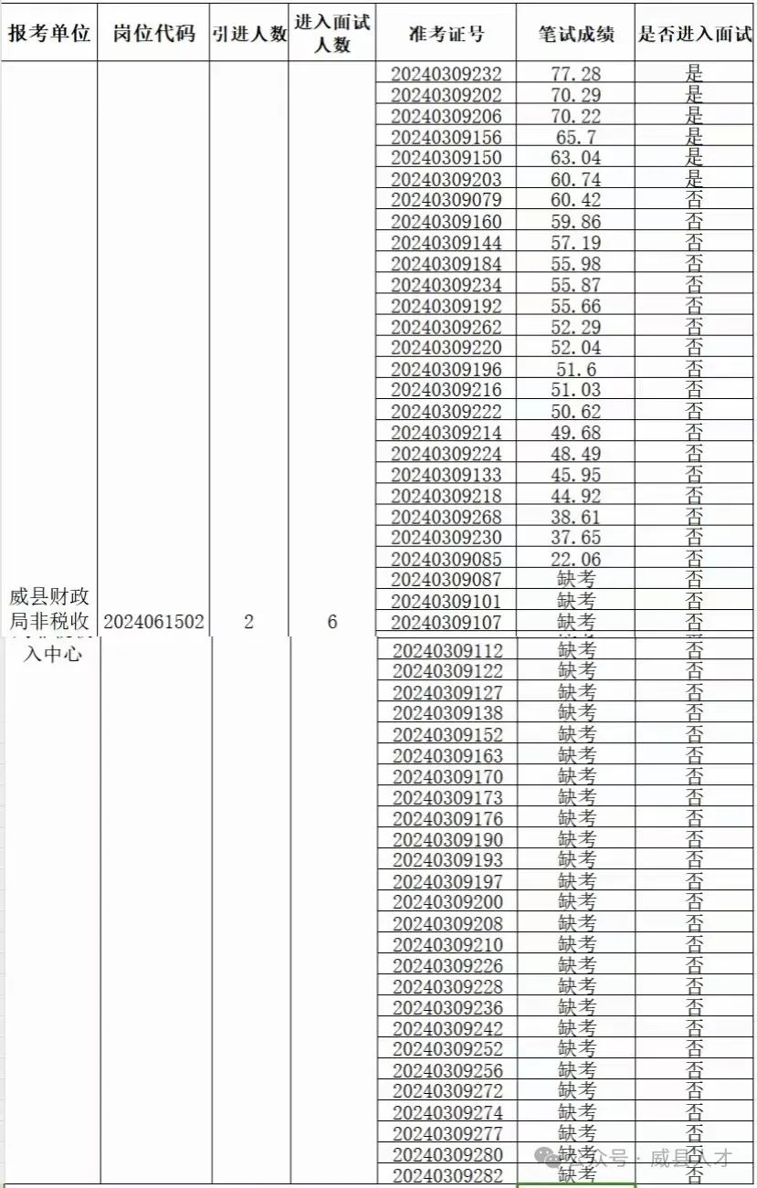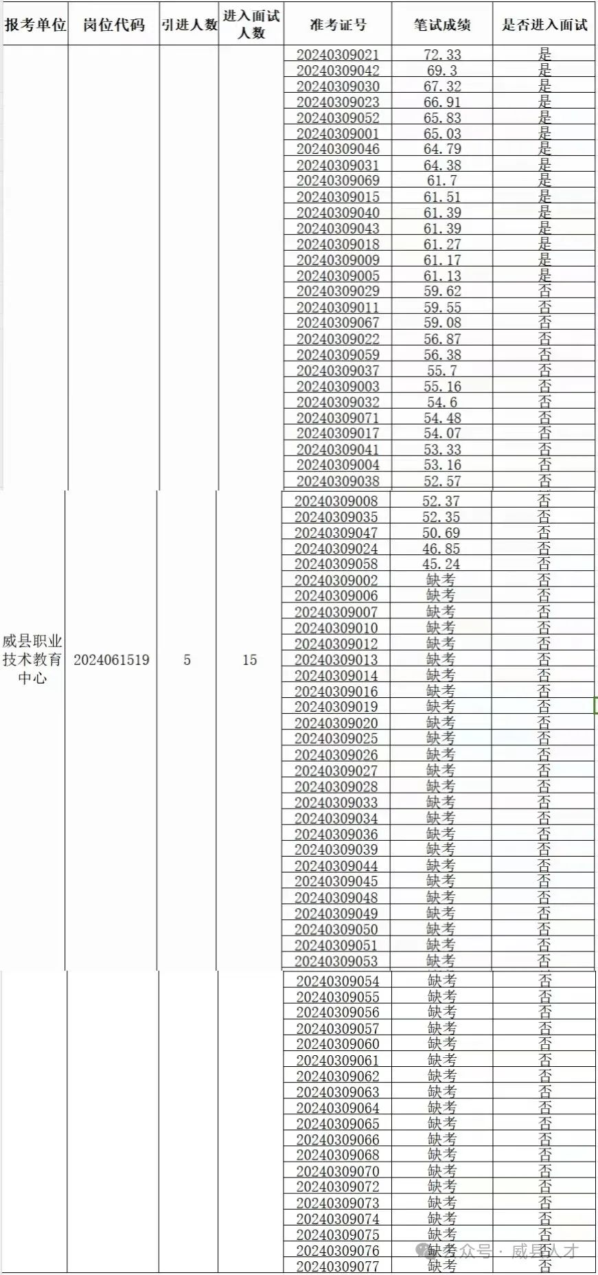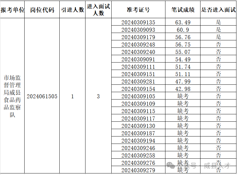 威县2024年高层次人才引进笔试已于2024年3月9日上午举行,现将各岗位笔试成绩及进入面试人员予以公告: