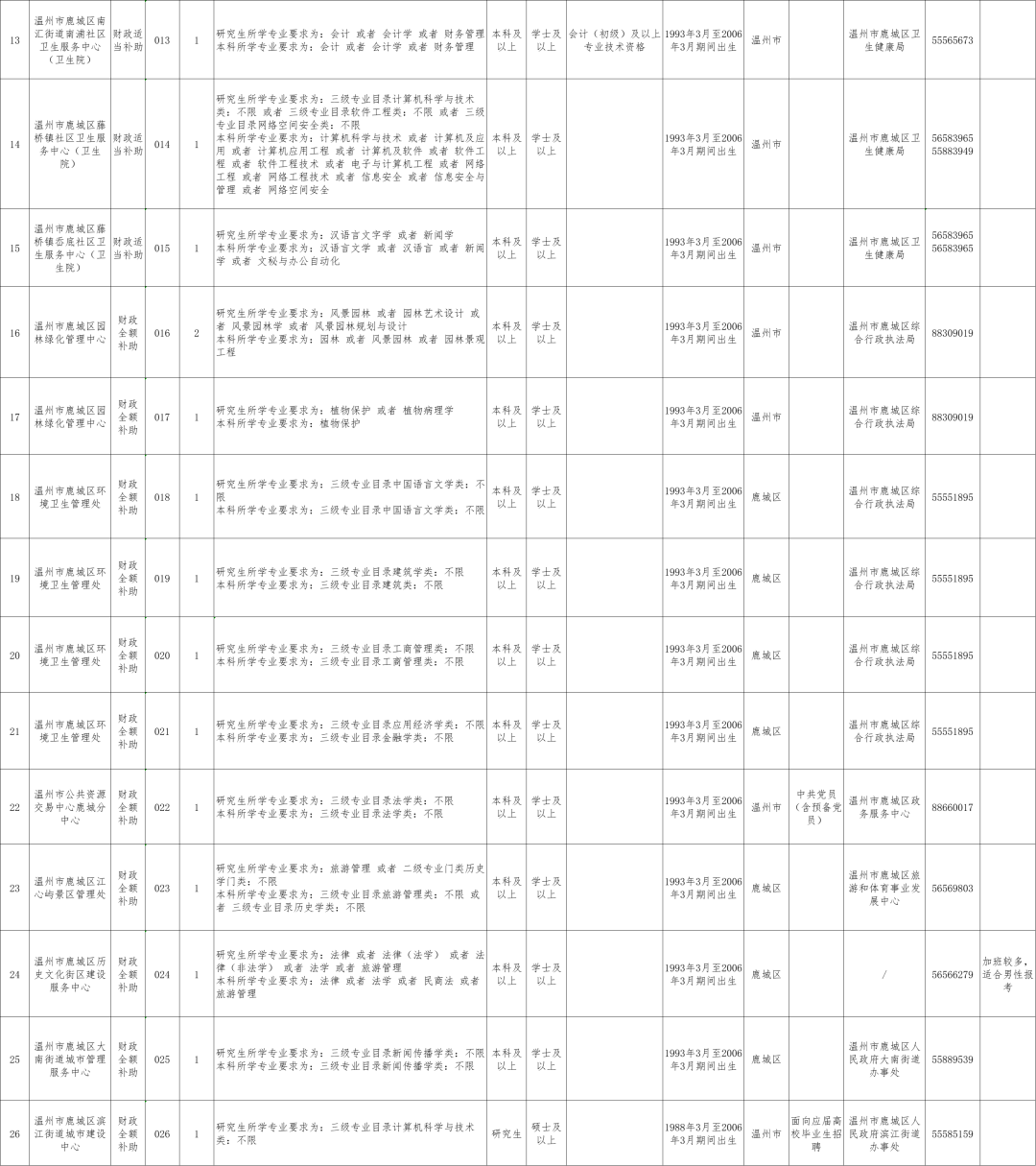 【温州招聘】温州市鹿城区招聘38人,内附微信群开放通道
