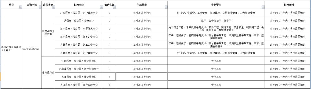 4.本科毕业生应为1999年1月1日及以后出生(部分定向岗位大专学历应聘人员年龄要求与本科学历一致),硕士研究生应为1994年1月1日及以后出生,博士研究生应为1989年1月1日后出生。