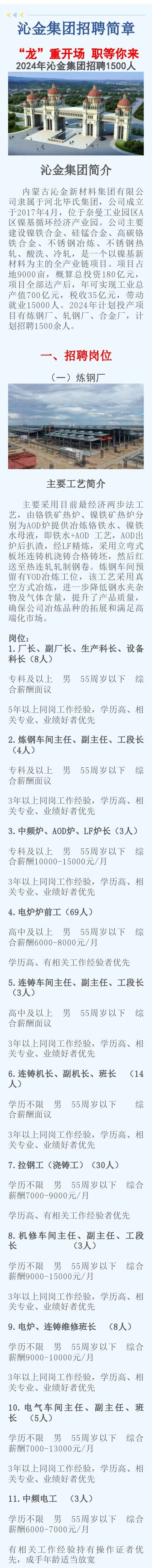 >不限学历、月薪近万元, |奈曼沁金集团招聘1500人