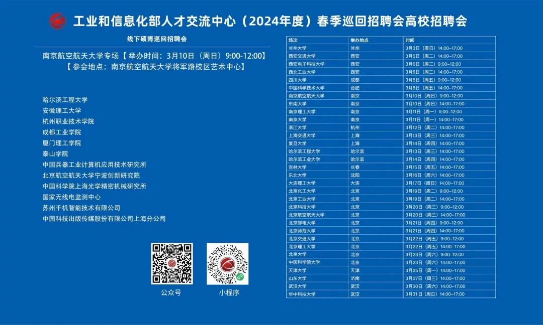 组团招聘 | 工业和信息化部人才交流中心2024年度全国春季巡回招聘会