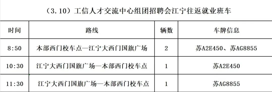 ● 时间:2024年3月10日(周日) 09:00-12:00 ● 地点:将军路校区西区艺术中心大厅 ① 做好材料准备 个人材料提前准备,如个人简历、自荐信等,让招聘单位更全面的了解你。 ② 提前到达会场 招聘会求职学生较多,可以提前到现场,熟悉现场地形,了解招聘岗位,在有限的时间内将简历呈递给招聘单位。 ③ 事先了解企业 招聘会上毕业生有机会与企业人员简单交流,也有可能有一个简短的面试,只有对企业有事先了解才能把握住面试的主动权。 ④ 入场前请使用i南航app扫码签到