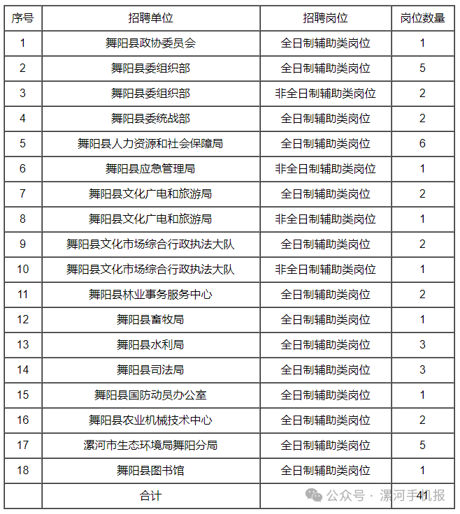 【昨日回顾】: 近日,舞阳县人力资源和社会保障局发布《舞阳县城镇公益性岗位招聘公告》,拟面向社会公开招聘公益性岗位工作人员41人。 ![]() 今天,小编给大家汇总了一波本地优质新岗位推荐 快来看看哪些企业正在招人~ 如何申请职位? 1、点击想要查看的的岗位,进行申请职位 2、还可以点击【电话】,直接与企业联系 3、申请职位前一定要记得先完善简历哦!