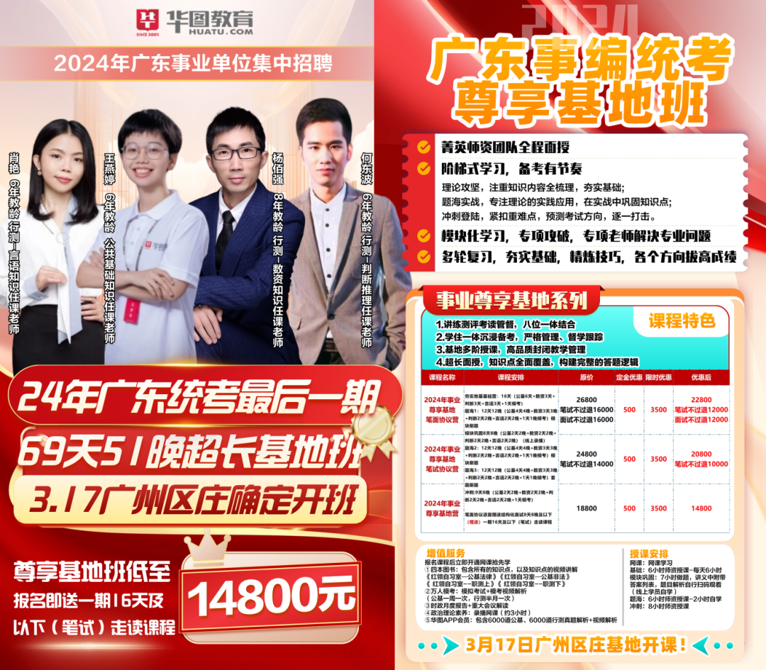 请再悄悄加点油,无论如何都想听你说: ”我终于成为不负众望的人了“ 🔅1.湛江市公安局麻章分局招聘 🔅2.深圳市龙岗区第五人民医院招聘 🔅3.湛江市公安局麻章分局招聘 🔅4.阳江市人民医院招聘 🔅5.阳江市阳东区招聘 🔅6.惠州市公安局招聘 🔅7.信宜市就业见习人员招聘 🔅9.广州大学招聘 🔅10.惠州市公安局仲恺高新技术开发区分局招聘 注:标红为明确有编制 以下是公告重点内容汇总 完整版公告请扫码获取 招聘人数:若干人(新兴有岗) 报名时间:2024年6月止 考核内容:线上测评+面试 学历要求:本科及以上 福利待遇:详见公告 招聘人数:66人 报名时间:招满为止 考核内容:试用 学历要求:大专及以上 福利待遇:详见公告 招聘人数:19人 报名时间:3月15日止 考核内容:笔试+体能测试+面试 学历要求:高中/中专及以上 福利待遇:(一)警务辅助人员的工资由麻章区财政保障,每人每月3200元左右(含基本工资,社保个人部分和单位部分,住房公积金个人部分和单位部分)。今后我局根据湛江市经济发展水平和湛江市职工平均工资水平的增长,报请湛江市麻章区委区政府逐步相应提高警务辅助人员的工资水平。 (二)我局为每名警务辅助人员购买人身意外伤害保险,统一配发制服。 (三)我局为警务辅助人员提供用餐场所,享受与民警相同的就餐标准。 招聘人数:128人 报名时间:3月13日止 考核内容:笔试+面试 学历要求:本科及以上 福利待遇:详见公告 招聘人数:71人(事业编制) 报名时间:3月18日-22日现场报名,详见公告 考核内容:面试 学历要求:本科及以上 福利待遇:1.用人单位执行阳江市阳东区事业单位工资福利政策,高层次人才按照类别享受阳江、阳东两级引进奖励。对副高级职称或硕士研究生以上人才给予相应的安家费和生活补贴。 2.对引进到我区工作的40岁以下博士、45岁以下博士后,除享受上述政策外,可分别向省财政申请相应的生活补贴。 3.享受人才政策配套服务,具体可通过电话进行政策咨询。 招聘人数:80人 报名时间:3月11日止 考核内容:笔试+体能测试+面试 学历要求:高中/中专及以上 福利待遇:(一)按照程序办理聘用手续,依据《中华人民共和国劳动合同法》签订劳动合同,建立劳动关系(劳动报酬见附件1)。 (二)辅警薪酬和其他福利待遇实行动态调整机制,根据社会发展情况,适时调整薪酬水平和福利待遇。统一购买人身意外保险,服装由公安局统一发放。 招聘人数:279人 报名时间:招满为止 考核内容:笔试+面试 学历要求:不限 福利待遇:和福利待遇。就业见习工作补贴+人身意外伤害保险或工伤保险;就业见习期间,就业见习人员由就业见习单位负责管理使用和按月发放工作补贴 招聘人数:30人(事业编制) 报名时间:3月15日止 考核内容:笔试+面试 学历要求:大专及以上 福利待遇:聘用人员为事业单位编制人员,享受国家和省政策规定的薪酬待遇。 招聘人数:200人(事业编制) 报名时间:招满为止 考核内容:笔试/操作技能考核+面试 学历要求:本科及以上 福利待遇:符合入编条件的纳入广州市事业单位编制管理;学校提供全国有竞争力的协议年薪制薪酬50—130万元不等(税前);住房补贴:100万元—500万元不等,具体面议,更多详见公告 招聘人数:23人 报名时间:3月15日止 考核内容:笔试+体能测试+面试 学历要求:高中/中专及以上 福利待遇:(一)按照程序办理聘用手续,依据《中华人民共和国劳动合同法》签订劳动合同,建立劳动关系(劳动报酬见附件1)。 (二)辅警薪酬和其他福利待遇实行动态调整机制,根据社会发展情况,适时调整薪酬水平和福利待遇。统一购买人身意外保险,服装由公安局统一发放。 扫码直接获取 公告原文及其岗位表 🚫 不要摆烂,只为想上岸的你! 提前公告预约,迈出领先备考第一步 莫担心、勿焦虑 科学备考助你效率满满!! 👆点击图片获取事业单位统招备考指导 24年事业单位集中招聘 备考资料推荐 -广告- 关注,后台回复关键词【统考课程】 了解更多课程和资料详情 关注广东华图,点击备考助手→联系我们 了解课程详情👇 |