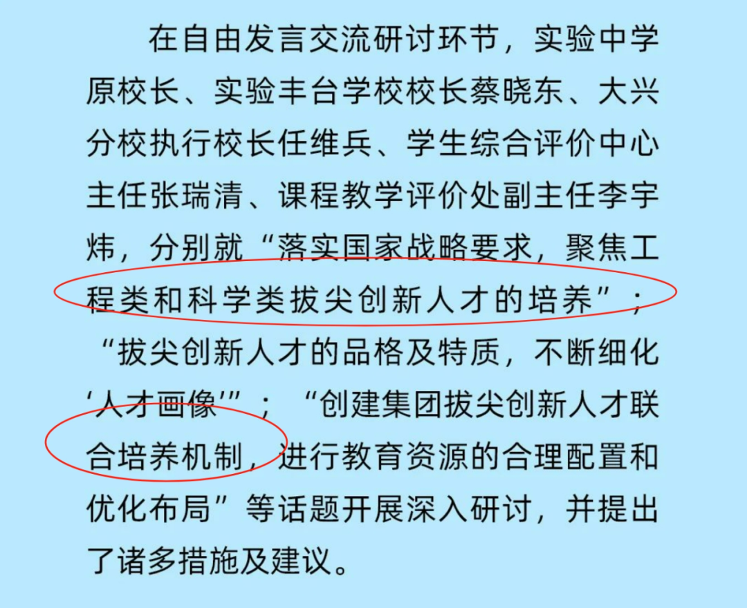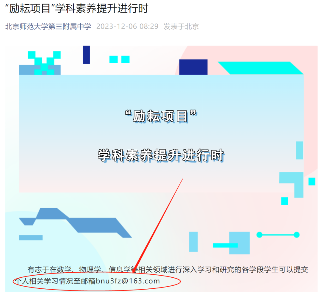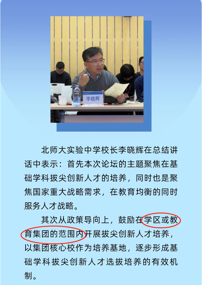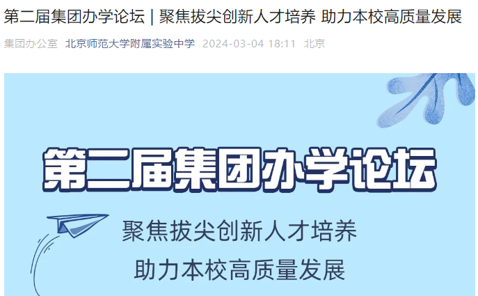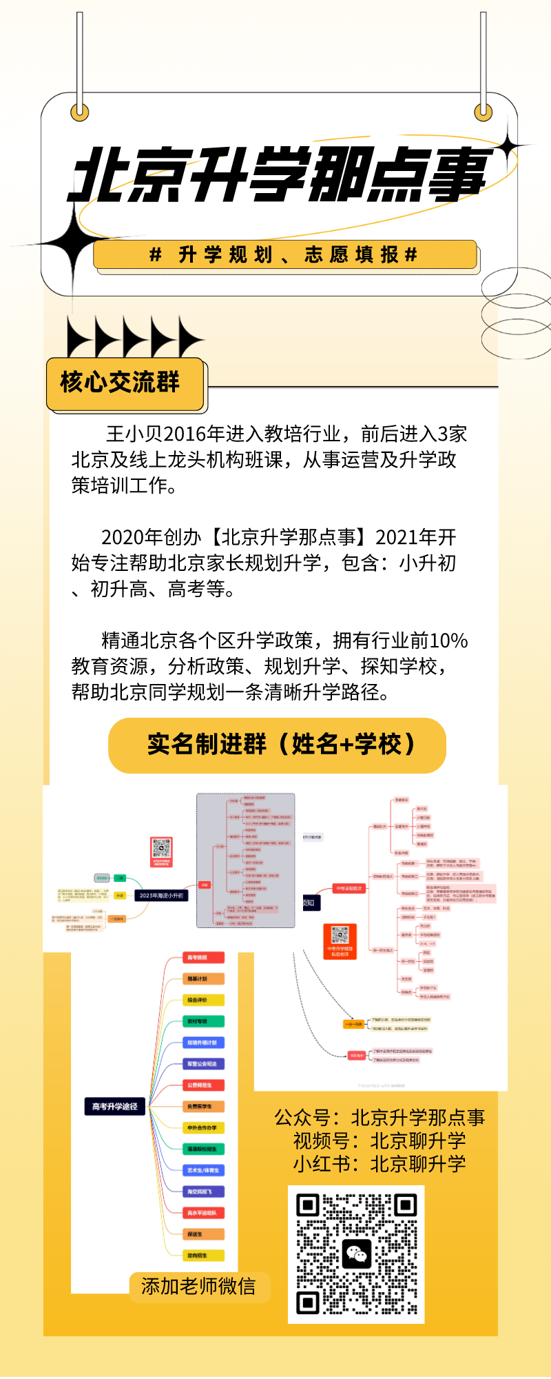 点击蓝字 关注我们 多年专注于北京升学政策研究 小升初、初升高 DZ等小道消息 海淀、西城、朝阳、东城等北京各区陆陆续续都有大动作,北师大实验中学集团第二届论坛的结束,相当于是官宣了其最新“拔尖创新人才计划”。 ![]() 北师大实验中学举行第二届集团内办学论坛,从中了解到“拔尖创新人才培养”方面的信息。 教育集团:9所中学,3所小学,横跨5区 北师大实验中学集团现在的规模非常强大,包括9所中学,3所小学,跨越5个行政区。这么大规模的选拔,肯定要选拔出更优秀更适合的学生。 ![]() 选拔范围:学区或教育集团内 李校长发表了讲话,鼓励在学区或教育集团内进行培养选拔,以集团核心校为培养基地。可以看出集团校内是选拔的主要方式。 ![]() 培养方向:工程类和科学类 交流研讨环节也,指明了拔尖人才培养和选拔的方向,主要聚焦在“工程类和科学类拔尖创新人才的培养”,创建集团内人才联合培养机制。 ![]() 选拔年级:或许从低年级开始 重点表述了,拔尖的前提是“拔”,重在基础学科特长的“早发现”,是不是可以理解有可能会从小学低年级开始选拔和培养,家长们需要格外注意。 ![]() 培养方式:丘班+贯通班 重点描述到通过“丘班”和“贯通班”培养拔尖于创新人才的培养模式,为集团内更多优秀的学生提供成长和发展。 ![]() 北师大实验: syzxbm@126.com 中考招生咨询邮箱 jcxk_rencaipeiyang@163.com sdszxb@163.com 招聘邮箱 大家可以参考使用,同时也可以使用集团内的三附中文章内留下了邮箱。 ![]() 喜欢记得转发、分享,可能能帮助到更多同学家长 喜欢记得转发、分享,可能能帮助到更多同学家长 ![]() |