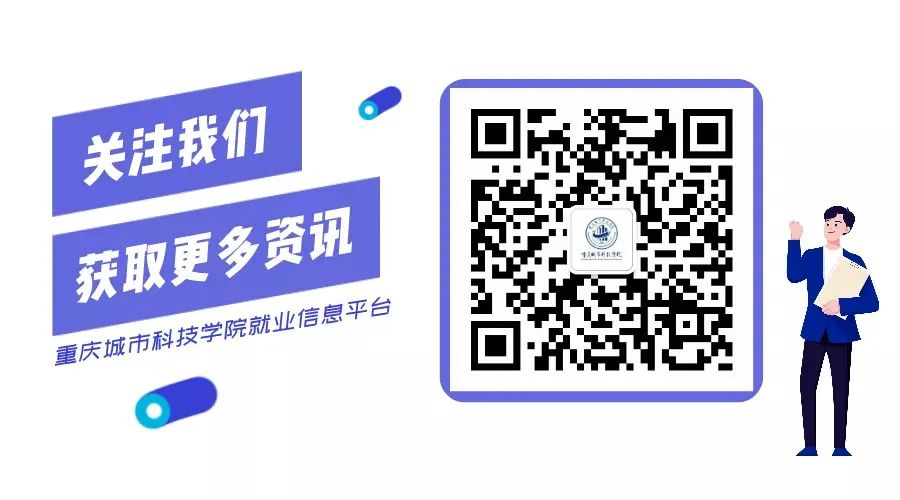 免责申明:【重庆城科就业创业】微信公众号转载内容仅以信息传播、帮助更多学生就业创业为目的,如涉及作品内容、版权和其他问题,请联系我们删除。