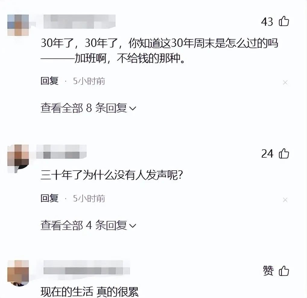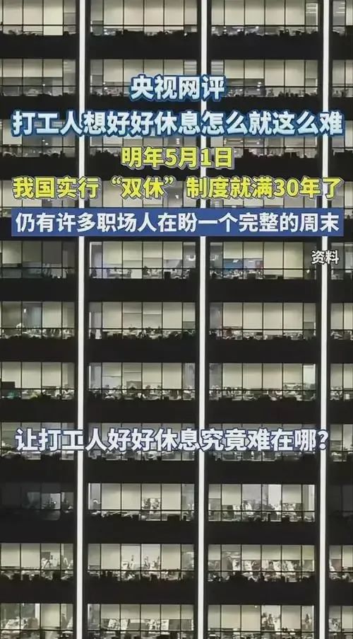 前言明年五月一日,我国双休制度将迎来三十周年庆典,央视网为广大打工人群发声:为何在繁华盛世,劳碌众生求一份闲暇竟如此艰辛? 正文三十年了,我国推行的"双休"制度理应为劳动者带来应有的休息权益。 然而在现实的职场环境中,这一旨在保障劳动者福祉的制度却面临着前所未有的挑战。 随着社会竞争的加剧和经济的发展,许多企业为了追求更高的效率和利润,开始要求员工加班,甚至不惜牺牲员工的休息时间。 在这样的背景下,"双休"对无数打工族来说逐渐变成了一种奢望。 他们中的许多人为了维持生活,不得不接受长时间的加班工作,将自己的双休时光全部投入到工作中。 这种状况不仅剥夺了他们的休息和娱乐时间,还严重影响了他们的身心健康和家庭生活。 在网络上,我们可以看到许多打工族表达出对双休的渴望和对现实生活的无奈。 他们中有人感叹道:"想休息就没什么收入",也有人抱怨说:"双休的底薪是一个比一个低"。 这些言论不仅反映出他们对双休的向往,也揭示了他们在现实生活中所承受的压力和挑战。 在薪资、生计需求和休息之间,打工族们陷入了艰难的抉择。 他们需要考虑到自己的家庭开支、孩子的教育费用以及父母的养老问题,这些都迫使他们不得不放弃休息,选择继续工作。 然而长期的加班和缺乏休息对他们的身体和精神健康造成了极大的负担,使他们处于一种恶性循环之中。 尽管ZF和社会各界一直在努力改善劳动者的待遇和工作环境,但要真正实现双休制度的初衷,还需要更多的努力和时间的投入。 在这个过程中,我们需要关注打工族们的真实需求,为他们提供更多的支持和帮助,让他们不再在生存和休息之间做出痛苦的选择。 当下的社会现实正在无情撕扯着"双休"制度最初的福利本质,这已成为无法回避的社会现象。 在这个看似充满无限可能的时代里,每个人的生存空间都在被压缩得越来越小。 残酷的职场竞争环境中,许多人为了获取更好的职业发展机会,不断挤压自己的私人时间和休息日,甚至不惜牺牲健康去迎合工作的高强压。 而另一面,在高昂生活成本的压力下,“打工人”的焦虑感也在持续累积。 每日披星戴月地辛勤工作,只为了换取微薄的收入支撑起基本的家庭开销。 他们的身影是城市夜幕中最常见的风景线。 然而即使如此辛苦,依然难以摆脱经济上的困扰。 “双休”,本应是对劳动者的尊重和关爱,但现在却似乎成为了一个遥不可及的梦想。 因此,众多网友在网络上发出了声音,渴望得到更合理的工时调整方案。 他们认为人的身体不是永动机,而是有血有肉、有情感也有疲劳的身体,它需要足够的时间来进行修复和恢复。 只有在充足的休息后,人才能有足够的精神状态投入到工作中,提高工作效率。 诚然,改变现状并非一蹴而就的事情,但我们需要的是一个以人为本的工作模式。 让员工既能完成工作任务又能享受生活,才是最理想的解决方案。 我们需要根据每个人的需求和能力进行灵活管理,并尽可能减少不必要的加班时间。 这种关注人性化的思维方式或许是我们寻找问题解决之道的关键所在。 对于管理者来说,应当充分理解并尊重每个个体的不同特点和需求,给予适度的关注和支持;同时也要认识到强制性过度劳作不仅会损害员工身心健康,也会降低整个团队的整体效能。 有了这样的认识基础,我们就有可能探索出一套适合当今社会发展趋势的管理制度。 这样,无论是公司还是个人都能从中受益——公司能够获得更高的生产力和更强的人才凝聚力,而每一个普通劳动者也能从紧张忙碌的生活中挤出一些属于自我的休闲时光。 归根结底,双休制度的目标就是要让每一位工作者享受到公平且人性化的待遇,从而达到一个理想的工作和生活的平衡点。 为了让这一理念能够真正正惠及广大劳动者,我们需要付出更多的努力,将温暖和希望带给那些每天默默奋斗的人们。 结语亲爱的读者朋友们,你对"双休"制度有何感想? 又是否遇到过类似的困境呢? 欢迎你畅所欲言,分享你的故事和观点。 让我们共同为这一制度的完善出一分力,为打工族争取应有的权益。 三十年过去了,我们期待着"双休"制度能够迎来新的变革,让制度的初衷得以充分实现,使劳动者们真正地享有应有的休息权利。 |