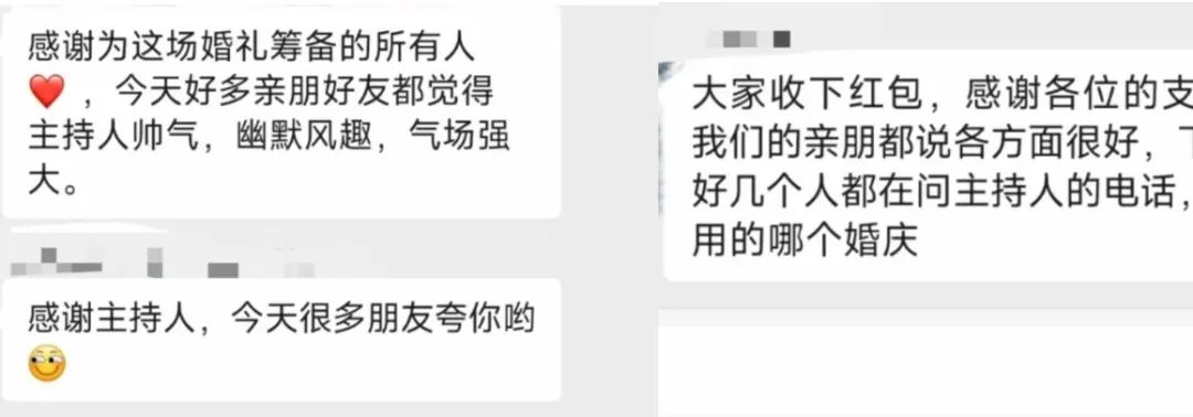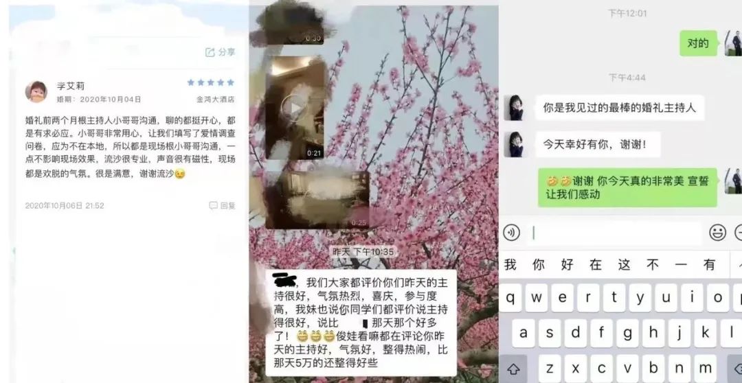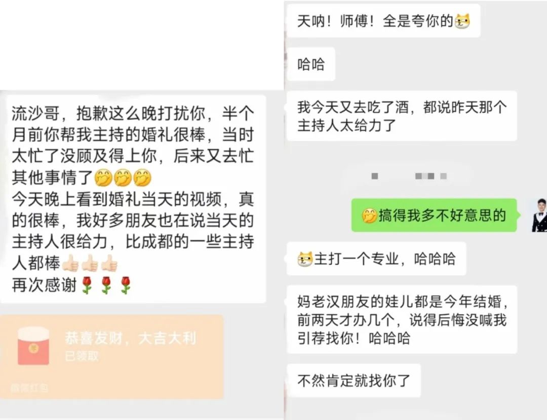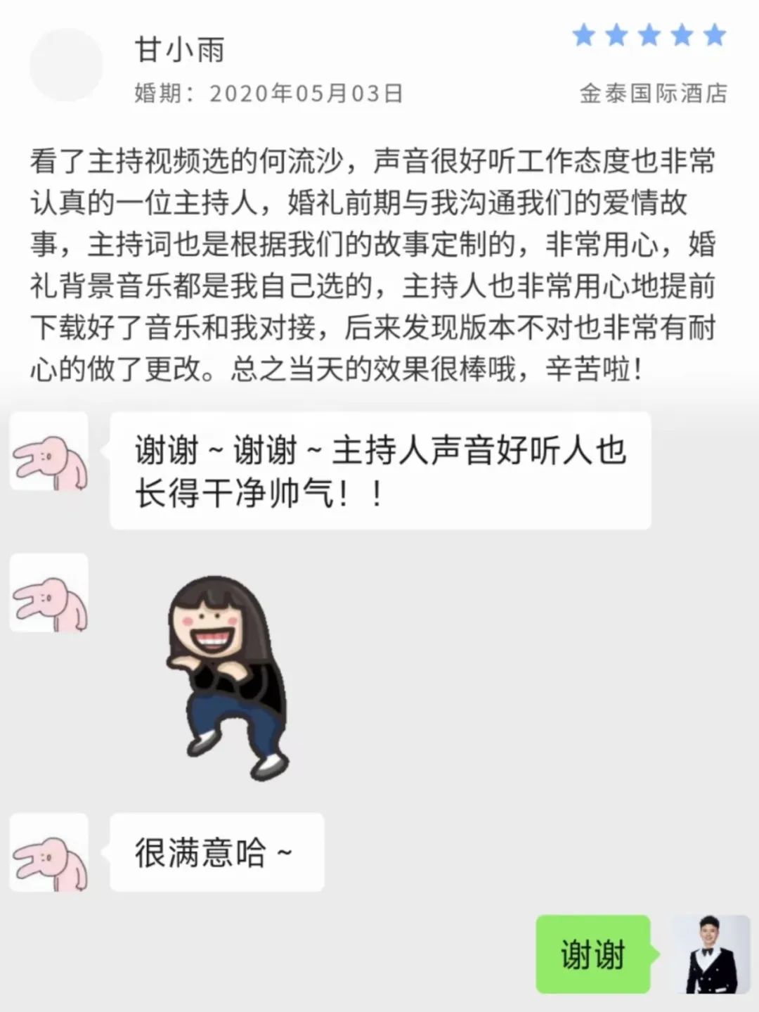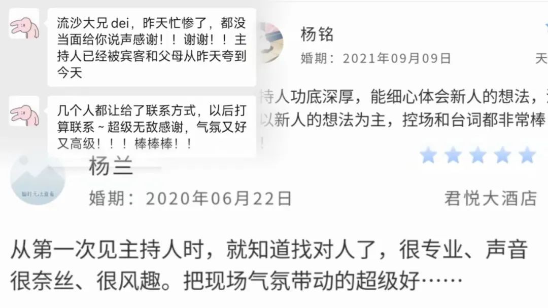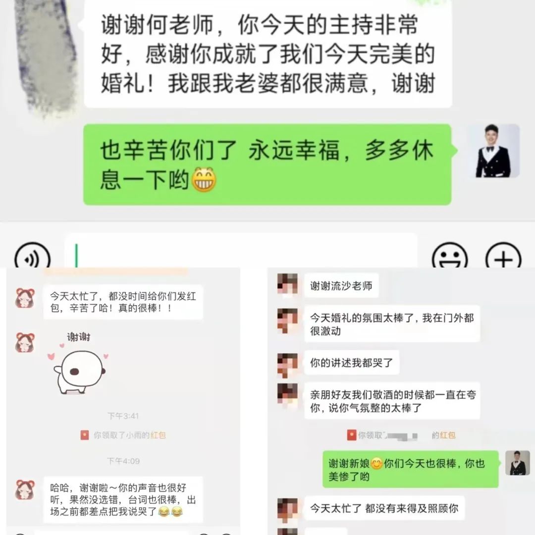 提前1个小时到达、播放暖场音乐、营造婚礼氛围 《关于个人形象》 《关于市场评价》 About Market assessment 一路走来得到市场的认可,非常感谢新人的信任和支持 见 让人无法释怀的从来都不是岁月 而是岁月里滚烫的心事 |