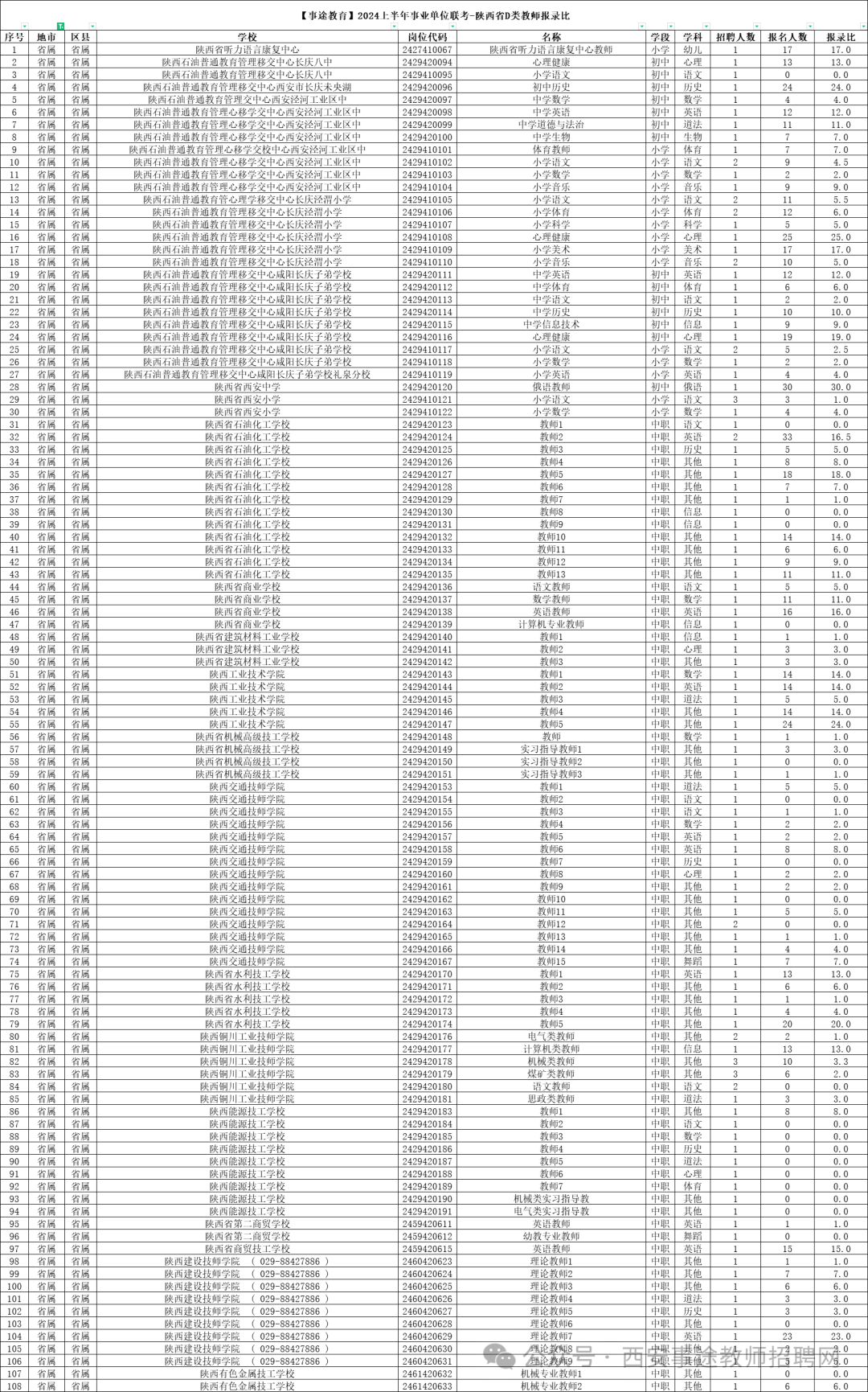 24上半年省属事业编教师 报名人数更新 3月7日18点 01 各科教师