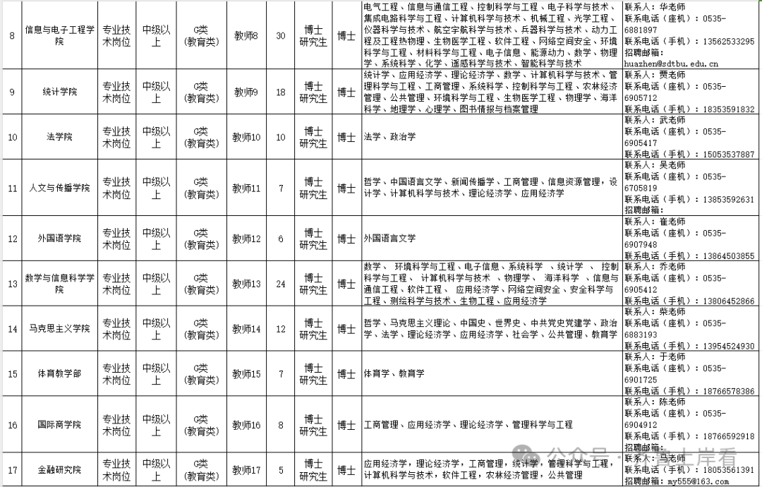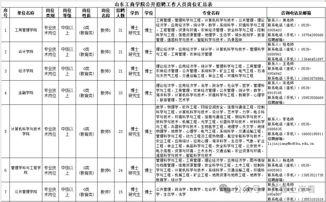 山东事业编,山东工商学院2024年公开招聘简章(中级和高级专业技术岗位) 二、报名方式及时间 山东工商学院人事处网站(http://rsc.sdtbu.edu.cn/)面向社会发布招聘信息。此次招聘岗位为长期招聘岗位,根据岗位报名情况,不定期启动面试、考察、体检程序,招聘岗位招满即止,未招满的岗位报名有效期至2024年12月31日。应聘人员通过电子邮件以“岗位名称+姓名+博士毕业+毕业学校”格式命名,将报名表分别发送至招聘岗位所在院(部)邮箱和人事处邮箱jiaoshizhaopin3682@126.com。3.资格审查:对应聘人员的资格审查工作,贯穿招聘工作的全过程。应聘人员需如实填写、提交相关个人信息资料。应聘人员提供的相关材料信息如有不实,一经发现取消资格。(1)《山东工商学院公开招聘博士考察表》(附件2);(4)应届毕业生提交就业推荐表,应于2024年12月31日前取得相应学历学位证书;(5)海外留学回国人员需提供教育部学历认证材料扫描件;(6)在职人员提交有用人权限部门或单位出具的同意应聘介绍信,对出具同意应聘介绍信确有困难的在职人员,经同意可在考察体检时提供。三、文章来源 来源(附件报名表下载地址): https://rsc.sdtbu.edu.cn/info/1036/3502.htm 查看原文↓↓↓ 觉得不错,分享呗,请点赞&点亮↓↓↓