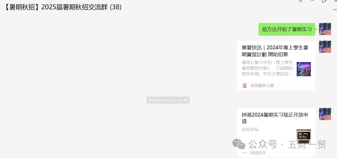 ![]() ![]() 向上滑动阅览 ![]() ![]() ![]() ![]() 大家好,我是五财一贸的创办人小黄豆学长,毕业于中央财经大学,跟很多届学弟学妹经历过校招,深知大家找工作不是那么容易,其实暑期实习是拿到秋招offer的关键阶段,很多企业在暑期就已经给了一些预录用offer了。 同时,现在很多暑期和秋招信息都比较分散,很多同学网申已经够累了,再去零碎的找暑期和秋招的信息,会很吃力,有的因此错过了好企业的网申时间,所以,为了帮助学弟学妹们更好的获取信息,也方便大家的校招交流信息,所以我建立了暑期和秋招网申汇总表和校招交流群~ 因为自己会耗费一些时间来整理暑期信息和笔面试薪资答疑,目的是想帮助学弟学妹们获得好的单位和企业offer,所以我会每个人收取88元,获得暑期+秋招网申汇总表和互助交流答疑群,之后会在群里发布无领导面试和半结构化面试模拟训练时间,通过不断地面试模拟训练点评,帮助大家能够快速的提升面试能力。这里稍微说明一下,我的能力有限,提供相对靠谱真实的信息给大家,希望一起加油,获得更好的offer~