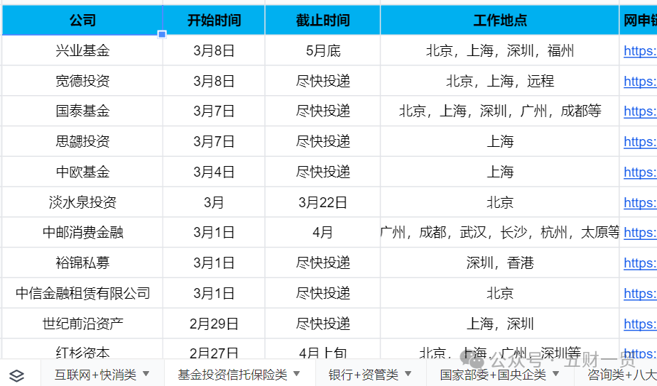 暑期+秋招网申信息汇总表(部分) 【互联网快消类】