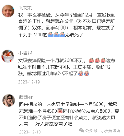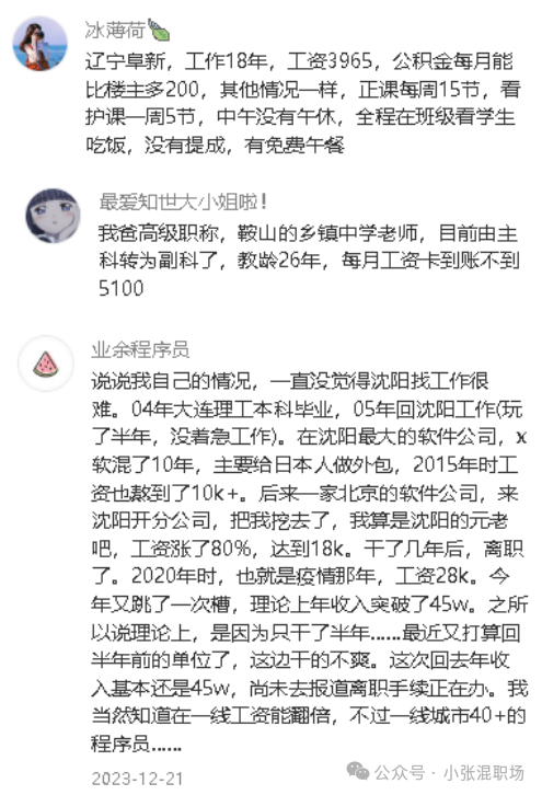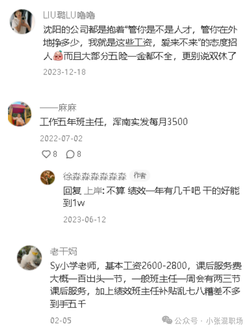 这个问题不知道是不是我在沈阳才觉得难?还是全国都面临这样的找工作难题? 一位网友自爆:本人本科金融专业,先后在天津的证券公司和银行工作,因为打算和男朋友在沈阳结婚,选择来到沈阳,万万没想到的是沈阳的就业环境确实不太乐观,或者也可能是我在沈阳没有资源,想要一份体面的工作确实很不容易。 招聘平台上竟然有很多“挂羊皮卖狗肉”的骗子公司,我不幸也不被喊去面试,现场工作人员的金融专业度让我瞬间提防起来,非金融出身的小白也可以应聘交易员,还可以给到7k以上的薪资,天上掉馅饼么不是?快跑!另外一些呢表面写着招聘后台营销推动等岗位,也就是非销售岗,聊到最后都会变成销售岗,又或者遍地是电销,到处是催收,总之心里落差还是很大的。 来沈阳的这些天,逛了万象城,发现沈阳奢侈品的购买力真是厉害,大家又都是做什么的,收入都这么好? 普通人的我们又都在做什么工作呢? 想找一份合心意的工作,何去何从,有点迷茫...... 以下是其他网友一些自爆和总结的待遇: