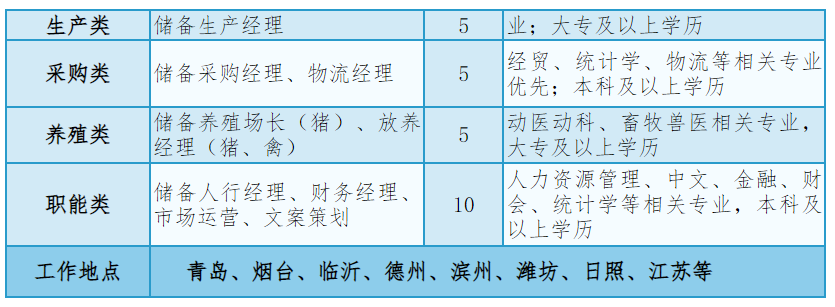 山东玖瑞农业集团有限公司 公司简介 山东玖瑞农业集团成立于2013年,总部位于青岛,是国家高新技术企业、山东省农业产业化龙头企业、省领军饲料企业。自成立以来,集团植根山东大地,围绕种植、养殖、饲料、食品、终端消费,涉及生物技术及动植物营养研发、生物肥料生产、绿色种植、农牧设备生产、饲料及原料生产、养殖、进出口贸易、金融担保等多领域,秉承“玖瑞农业,恒久为民”的企业理念,致力于打造从田间到餐桌、绿色健康、可持续发展的现代化全产业链农牧食品生态体系。 公司产业分布 ![]() 招聘需求 ![]() ![]() 福利待遇 ![]() ![]() 联系方式 联系方式(微信同号):