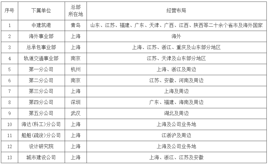 公司坚持“一主多元”业务模式,形成水工特色鲜明、市政优势显著、房建强力支撑、路桥特点突出的综合发展模式,经营范围遍布全国二十余个省、市、自治区。近年来,公司以主力军身份承建了上海国际航运中心洋山深水港、上海外高桥港、青岛董家口港、天津港、武汉阳逻港、广西防城港、深圳盐田港、河北黄骅港等港口建设;参与了海南西环铁路、沈丹客运专线、青岛地铁8号线、天津地铁6号线、南京地铁7号线等项目;积极践行“一带一路”倡议,承担了吉布提多哈雷港、印尼巴厘岛燃煤电厂码头、以色列海法港等境外项目以及军民融合等项目建设;牢记“国之大者”,彰显“央企担当”,积极投身于西部陆海新通道(平陆)运河航道工程、中船集团760研究所三亚某基地(一期)建设码头、印尼北加项目永久码头等一批海内、外重点工程项目建设,持续塑强“中建海军”品牌。