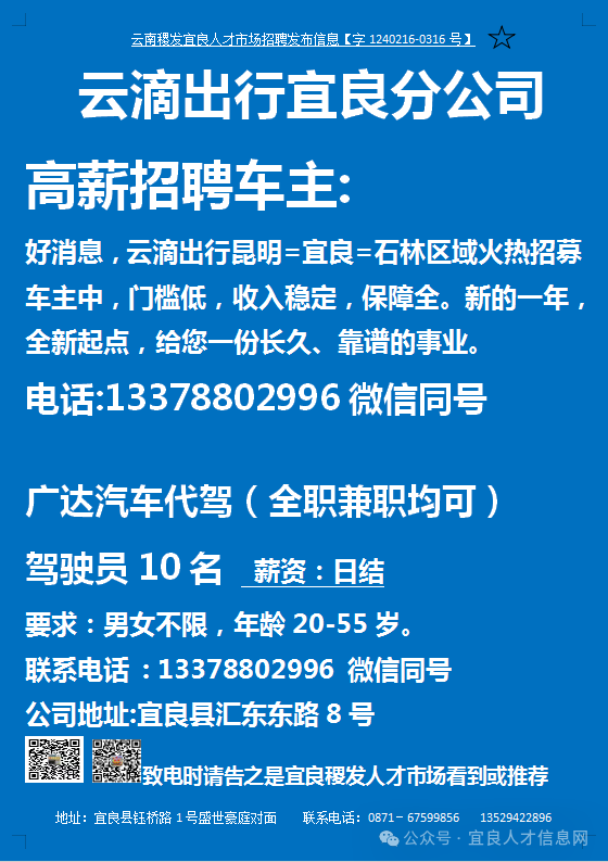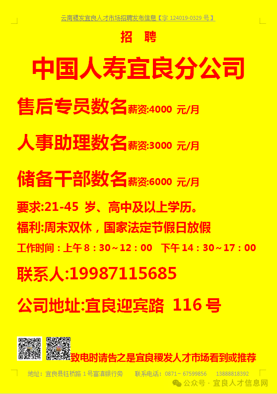 当前位置:首页>西北>【宜良本地招聘】(今日招聘)20240311期