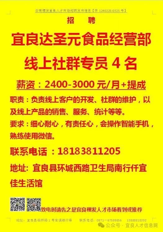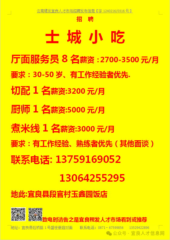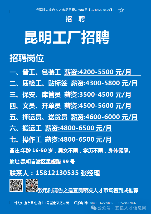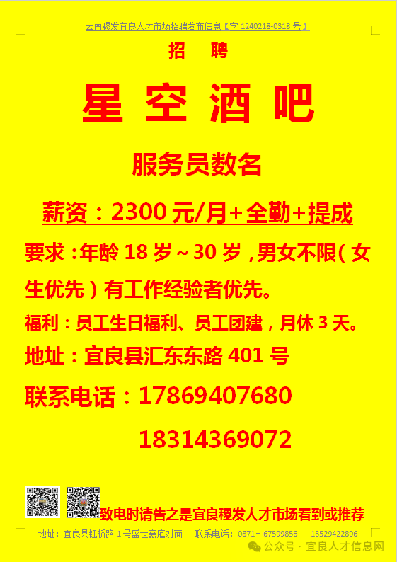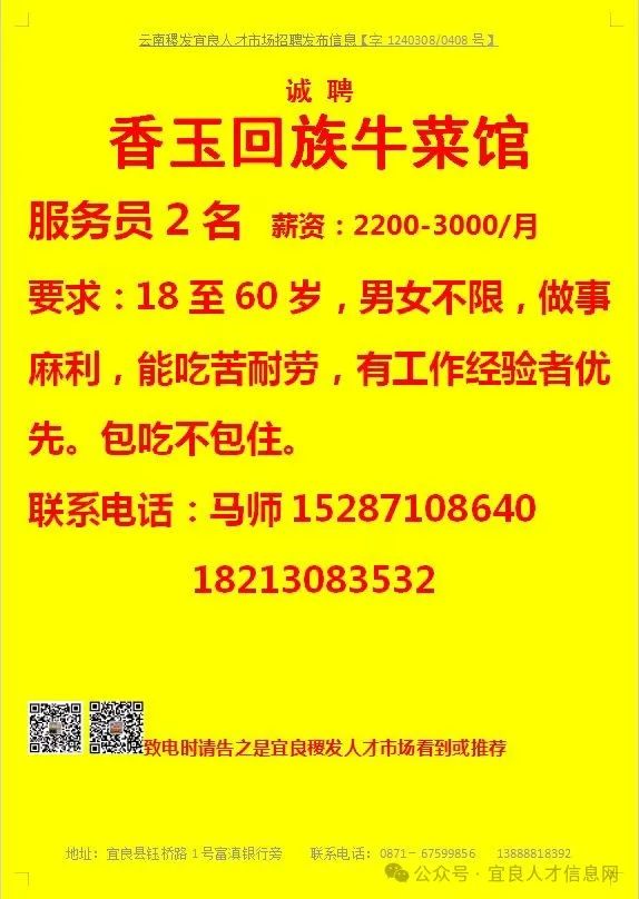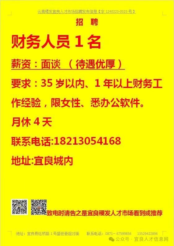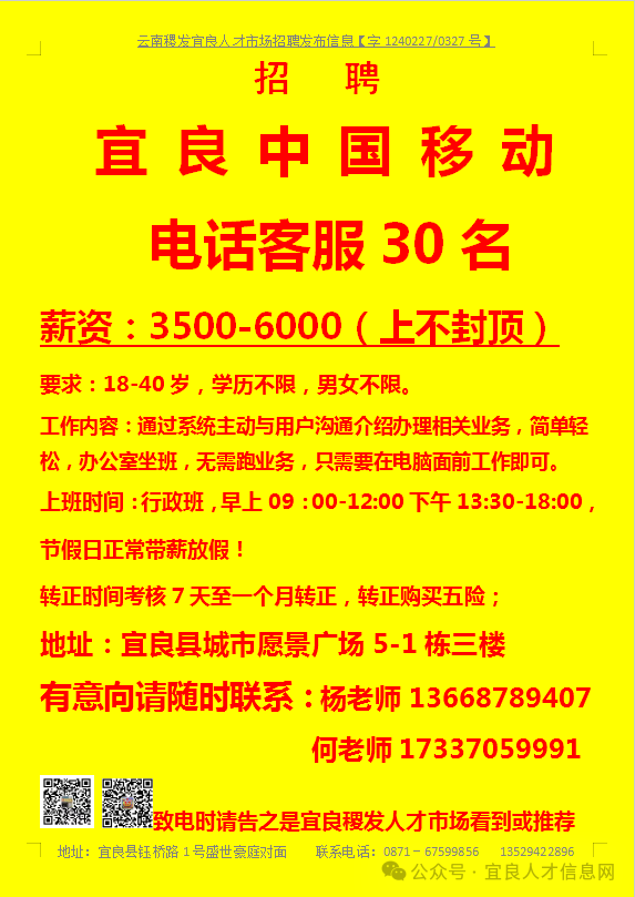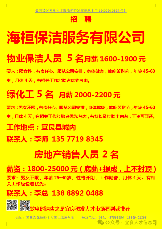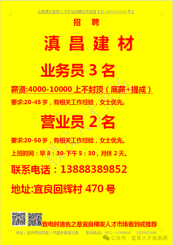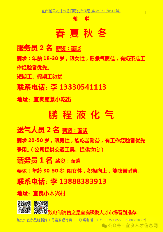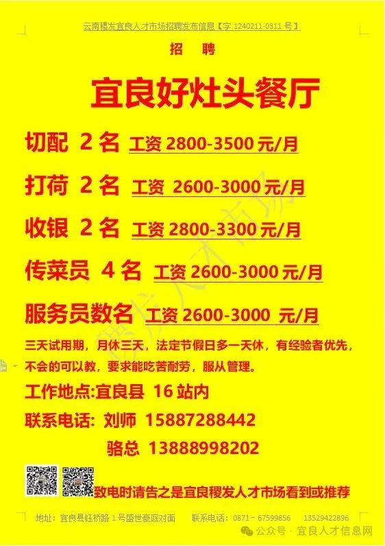 【宜良本地招聘】(今日招聘)20240311期
