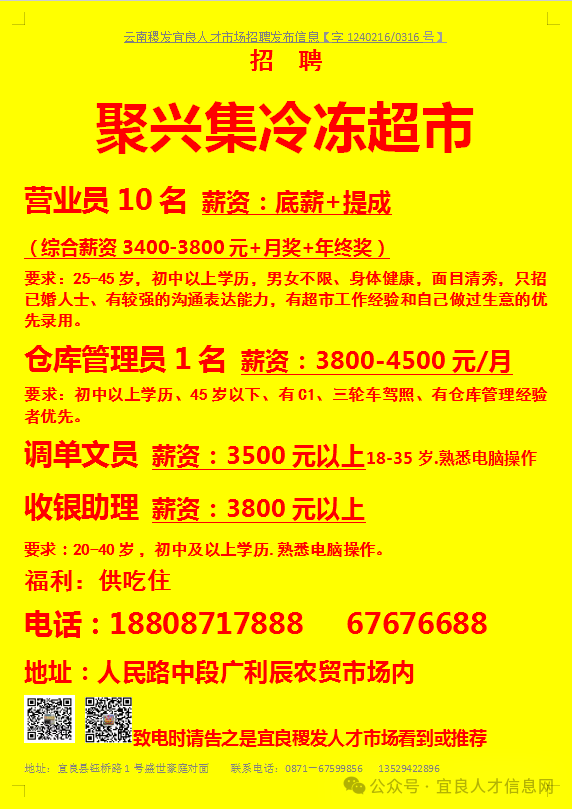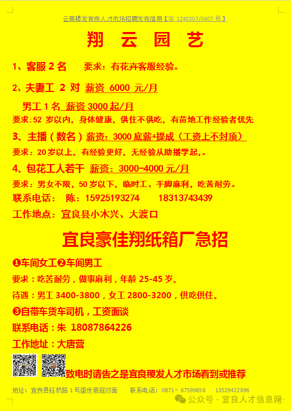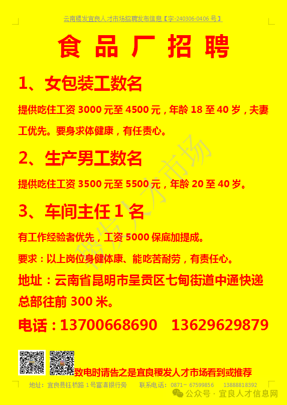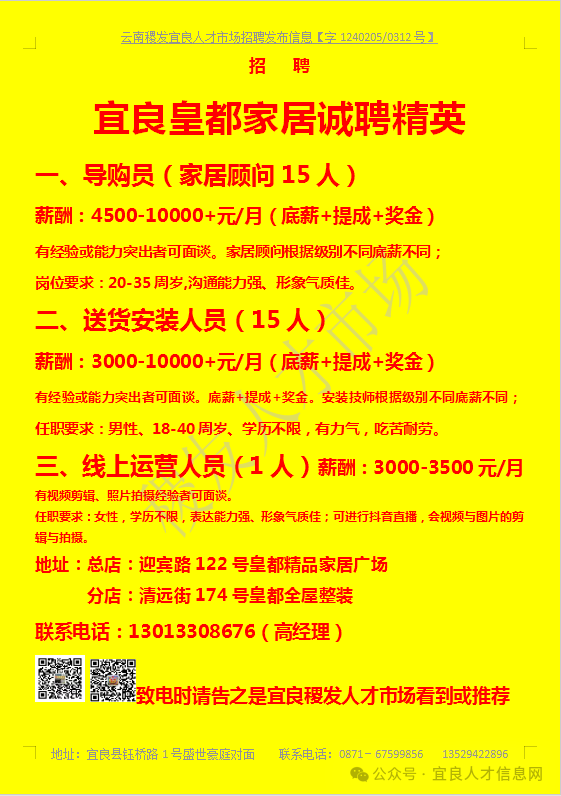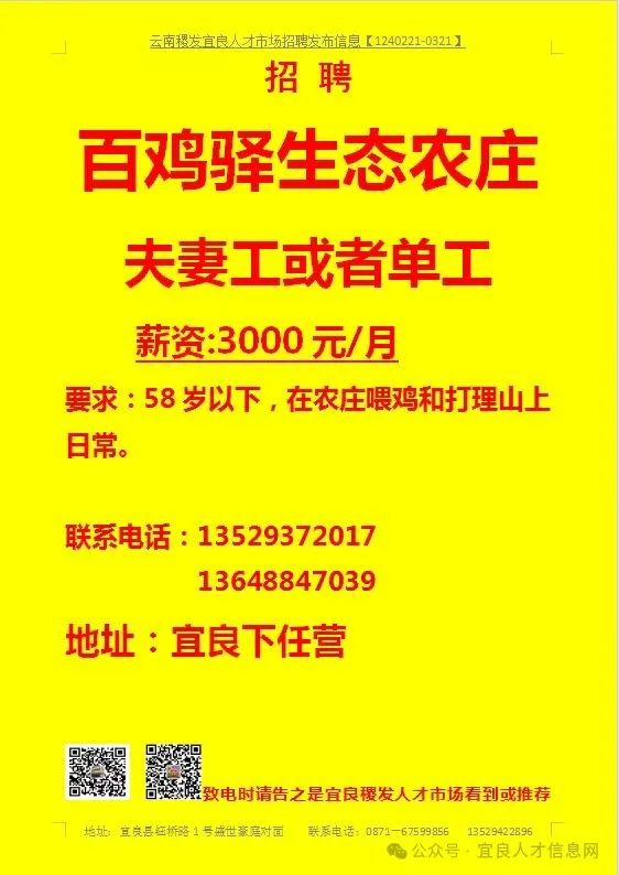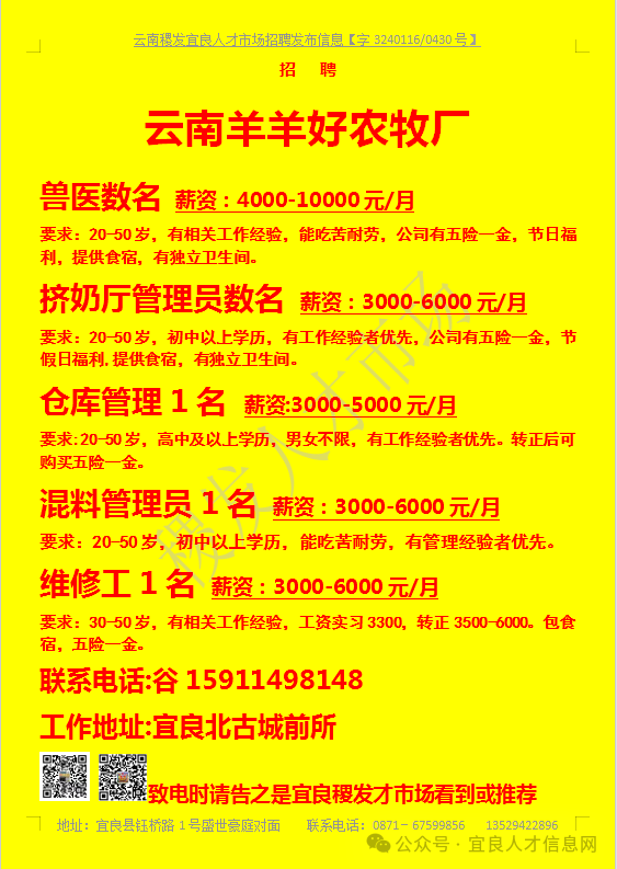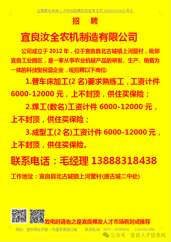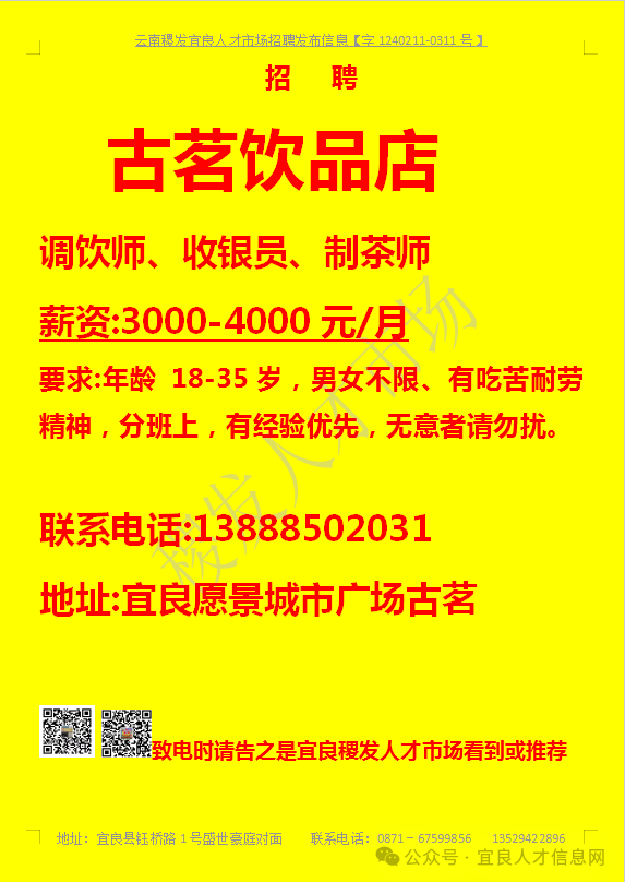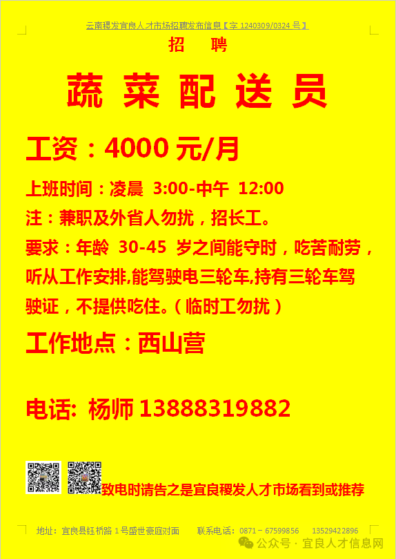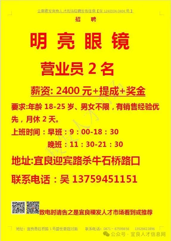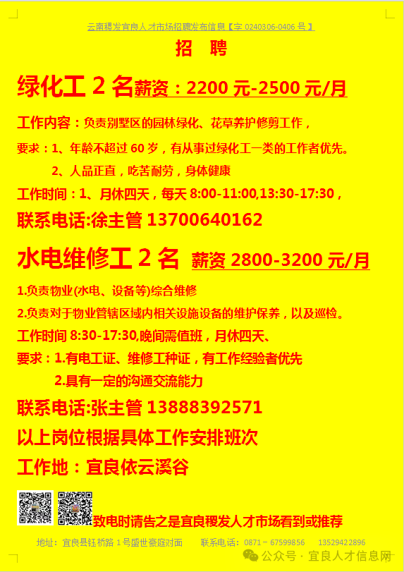 【宜良本地招聘】(今日招聘)20240311期