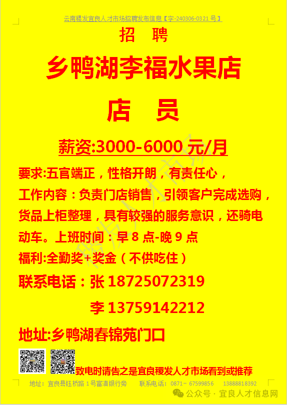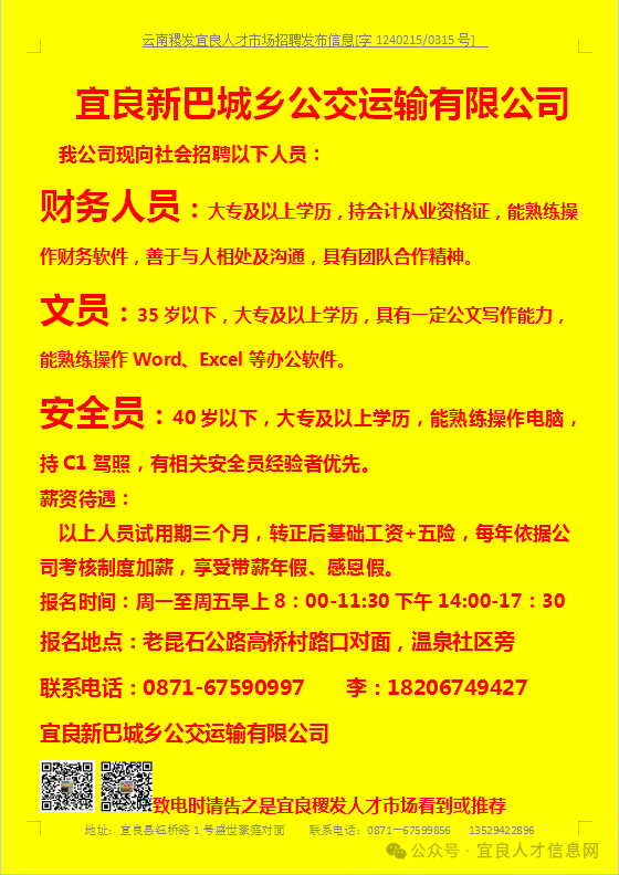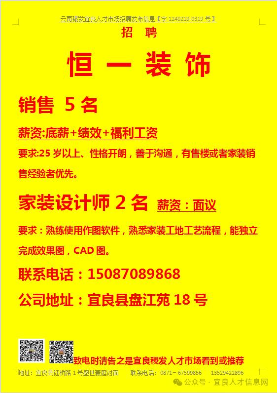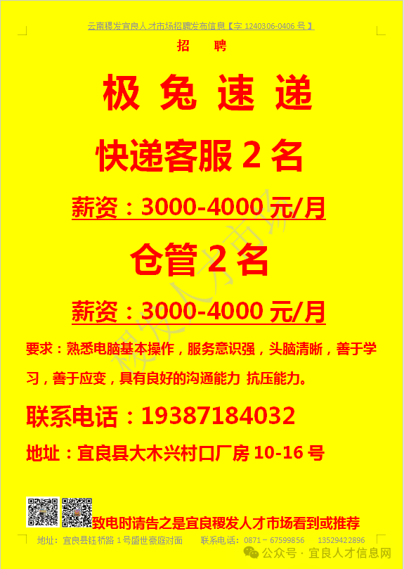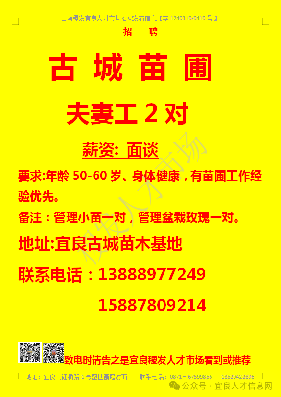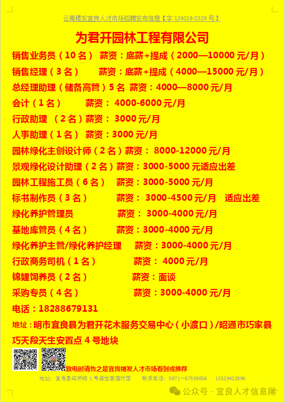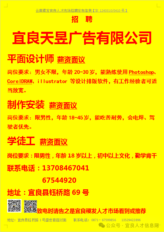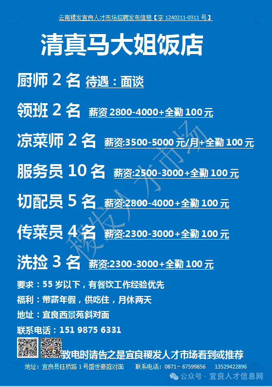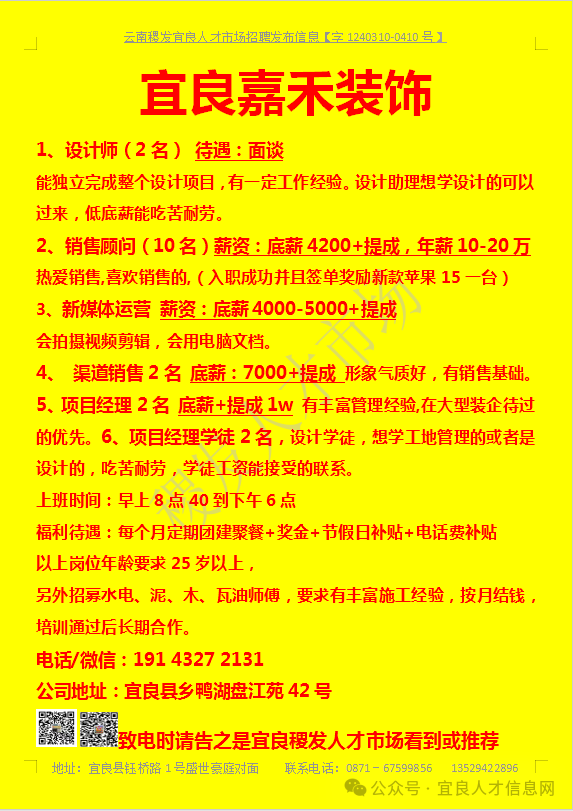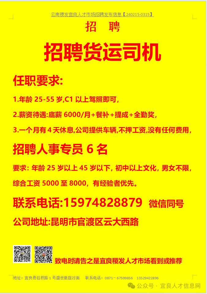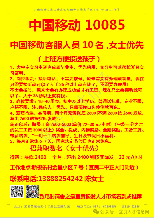 【宜良本地招聘】(今日招聘)20240311期