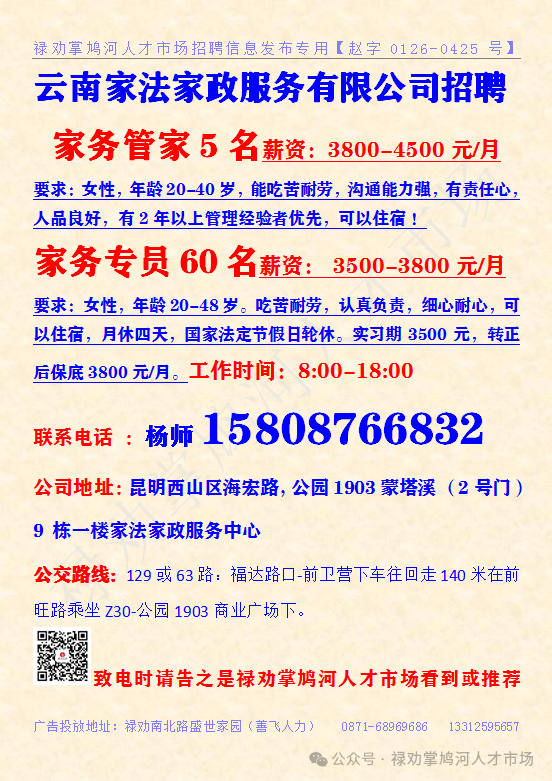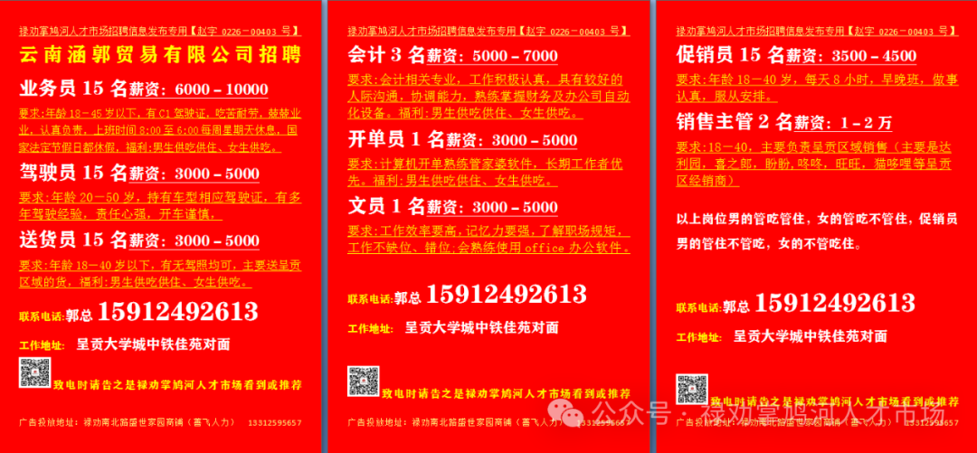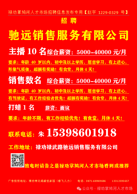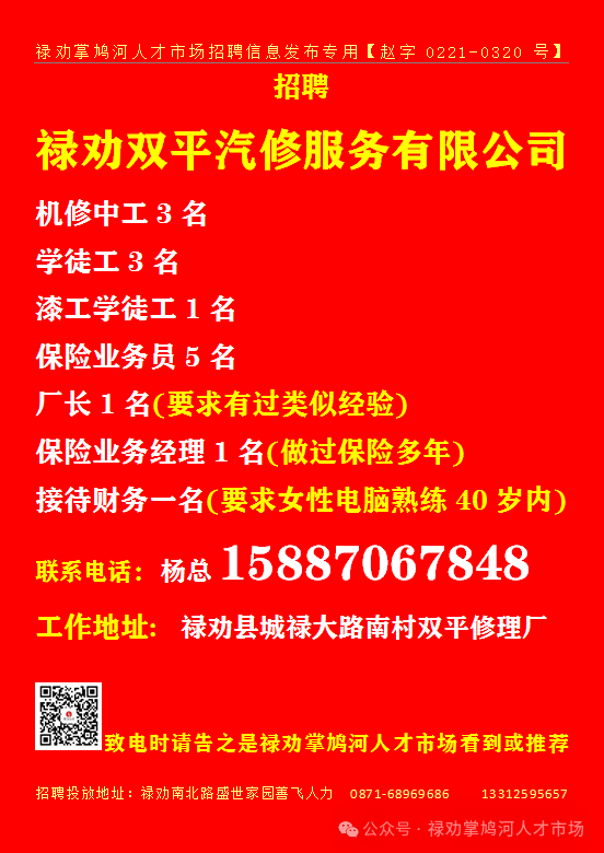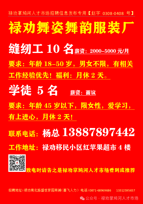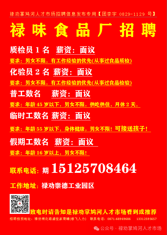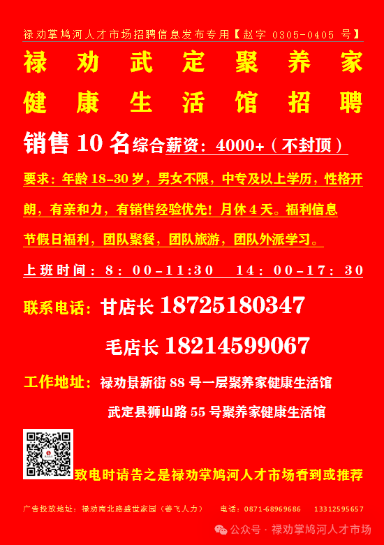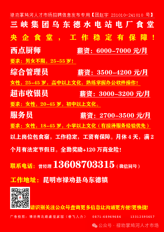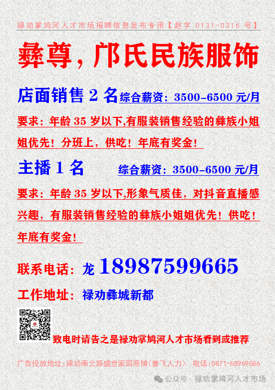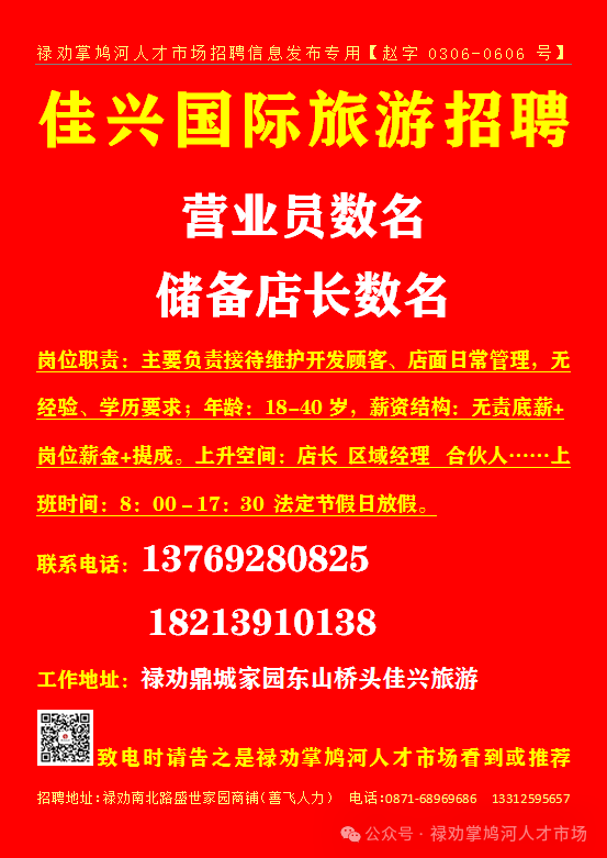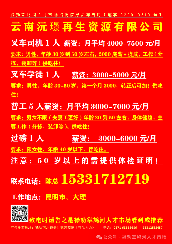 【禄劝招聘】禄劝掌鸠河人才市场,本地企业招聘岗位信息