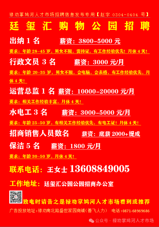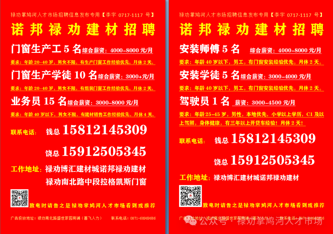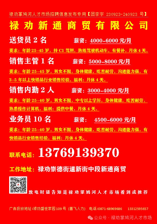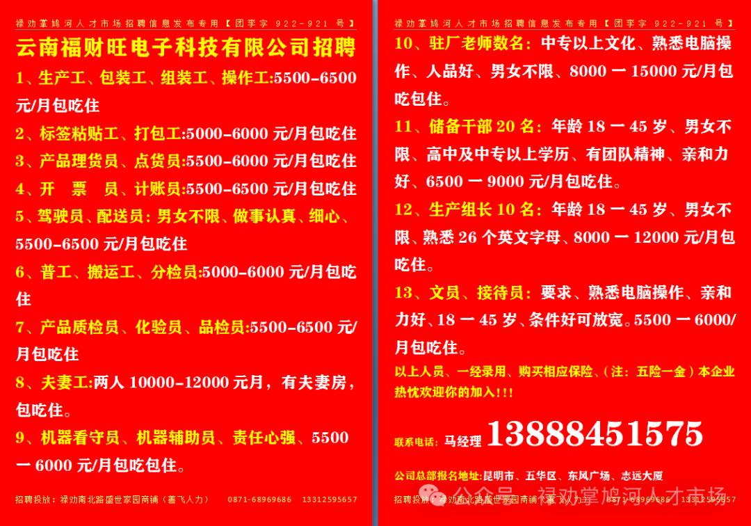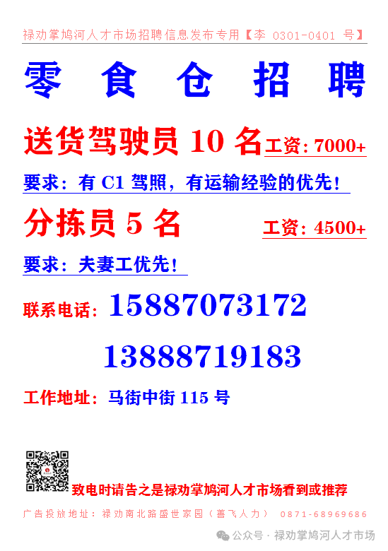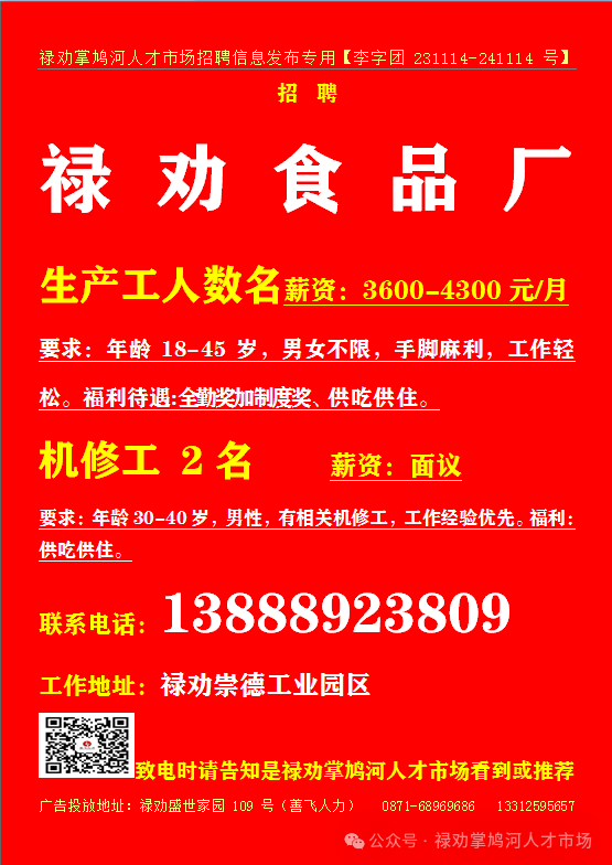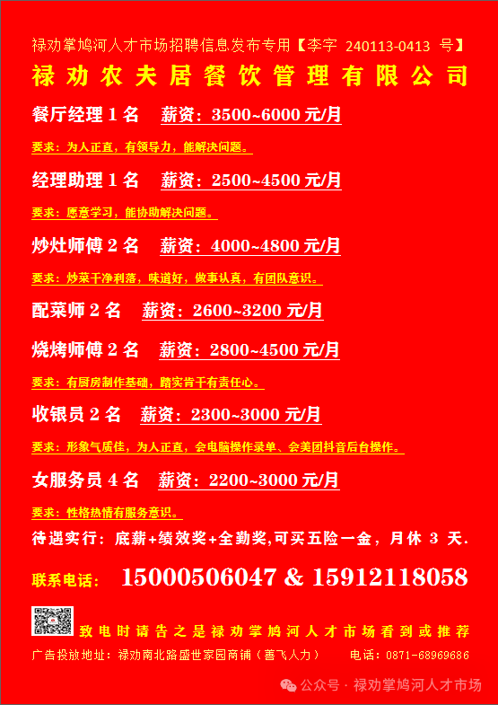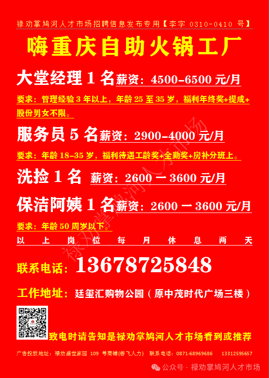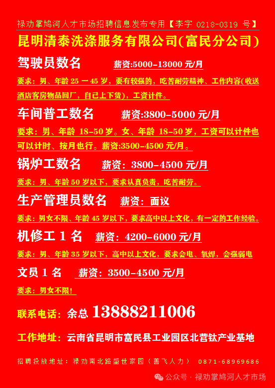 【禄劝招聘】禄劝掌鸠河人才市场,本地企业招聘岗位信息