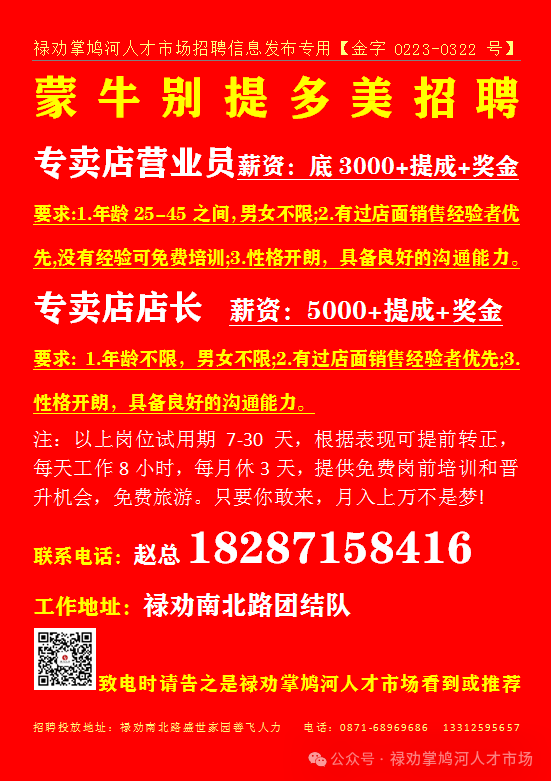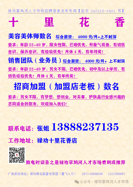 >【禄劝招聘】禄劝掌鸠河人才市场,本地企业招聘岗位信息