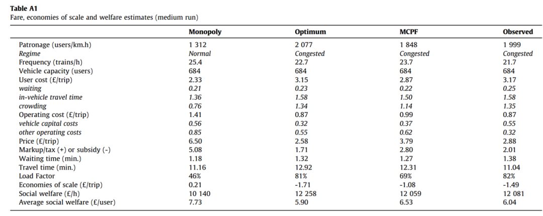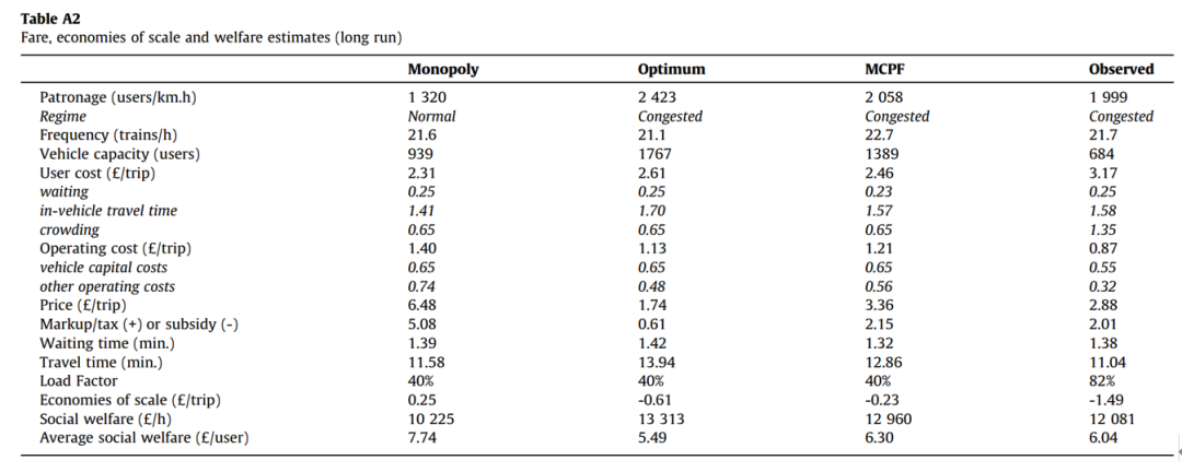 这一附加项,用于捕获每增加一个用户时车次服务频率的下降。因此,即使系统在正常情况下总是具有规模经济的特征,在拥堵情况下,规模经济一开始可能会持续存在,但超过某个临界值后,运营情况就会恶化,以至于总是会出现规模不经济的情况。